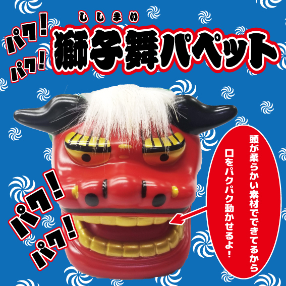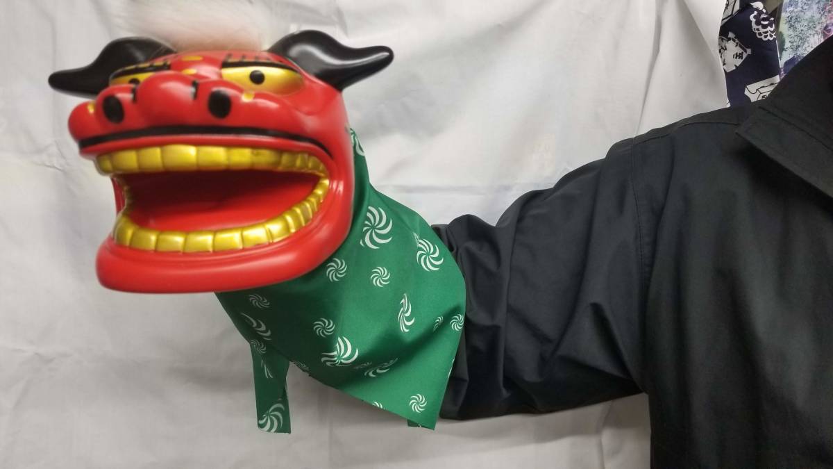 大人気、獅子舞のパペットです。手を入れて口をパクパク動かせます。