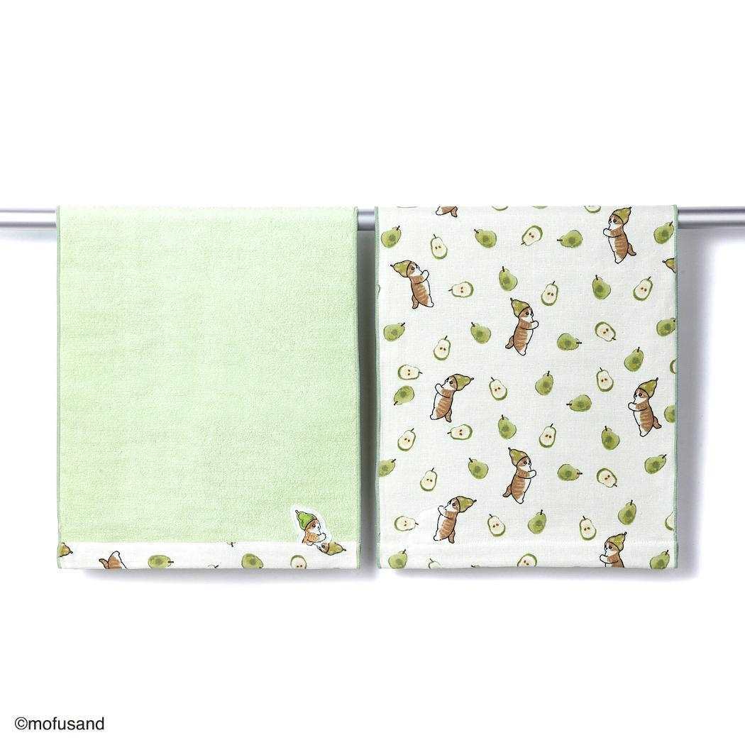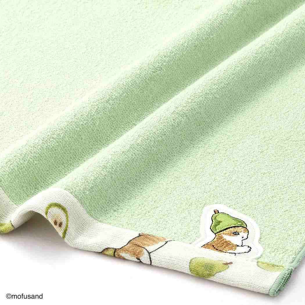 ジューシーなラフランスとにゃんこの組み合わせが可愛い にゃんこ絵師ことイラスト作家の「ぢゅの」さんが生み出した、もふもふなにゃんこが描かれたイラスト「mofusand(モフサンド)」より、タオルコレクションが登場やさしいカラーにワンポイントのアップリケが付いたシンプルな表面と裏面はラフランスをかぶったにゃんこが一面にプリントされており、両面で違った印象のデザインジューシーなラフランスとにゃんこの組み合わせが可愛く、細部にもこだわった1枚です毎日使いたくなるような触り心地が魅力で、ご自分用はもちろん、ご友人へのプレゼントなどにもおすすめですサイズ:約330x800mm素材:綿100%(本体)、ポリエステル100%(刺繍部分)メーカー型番:43-0082150