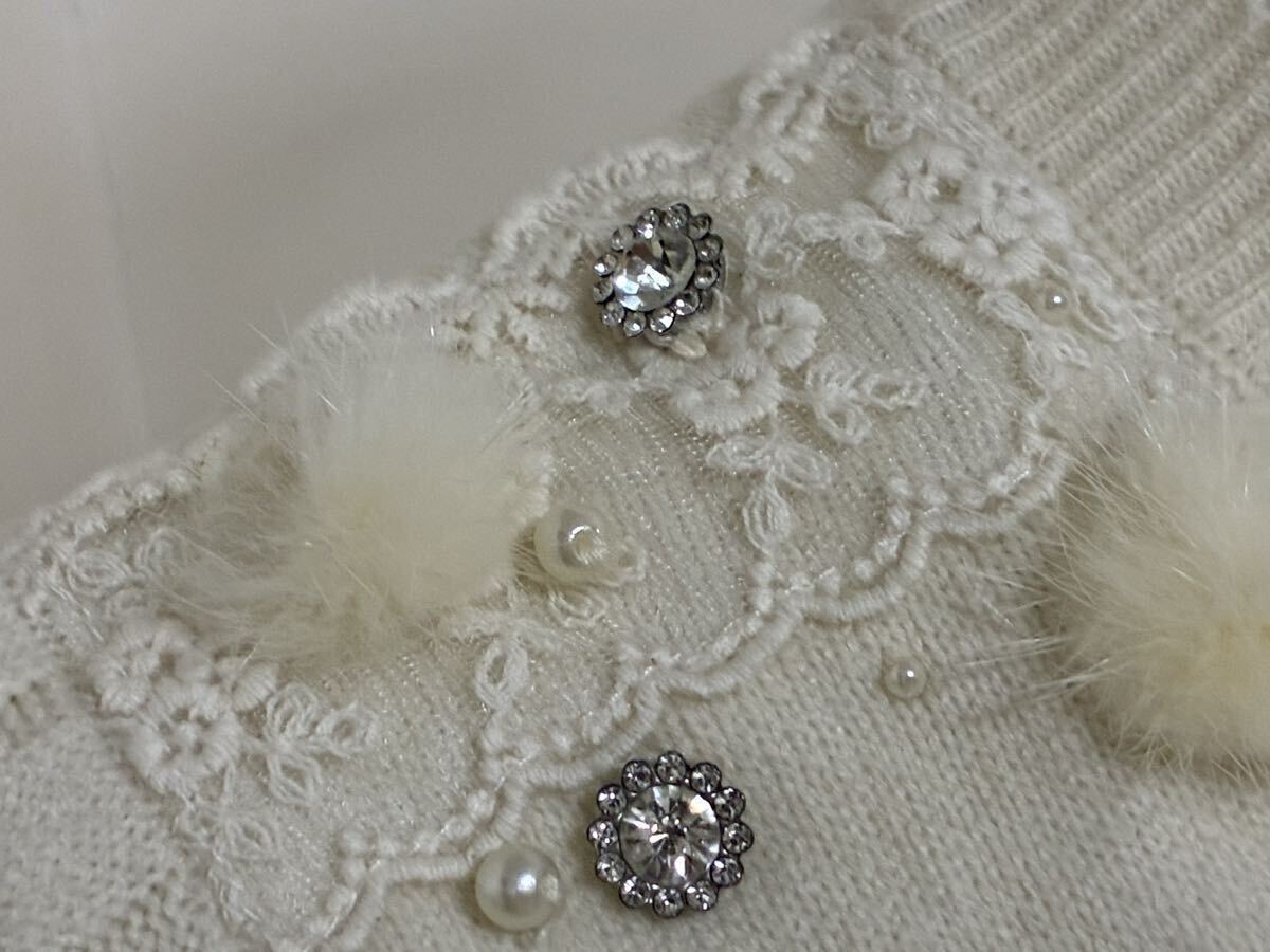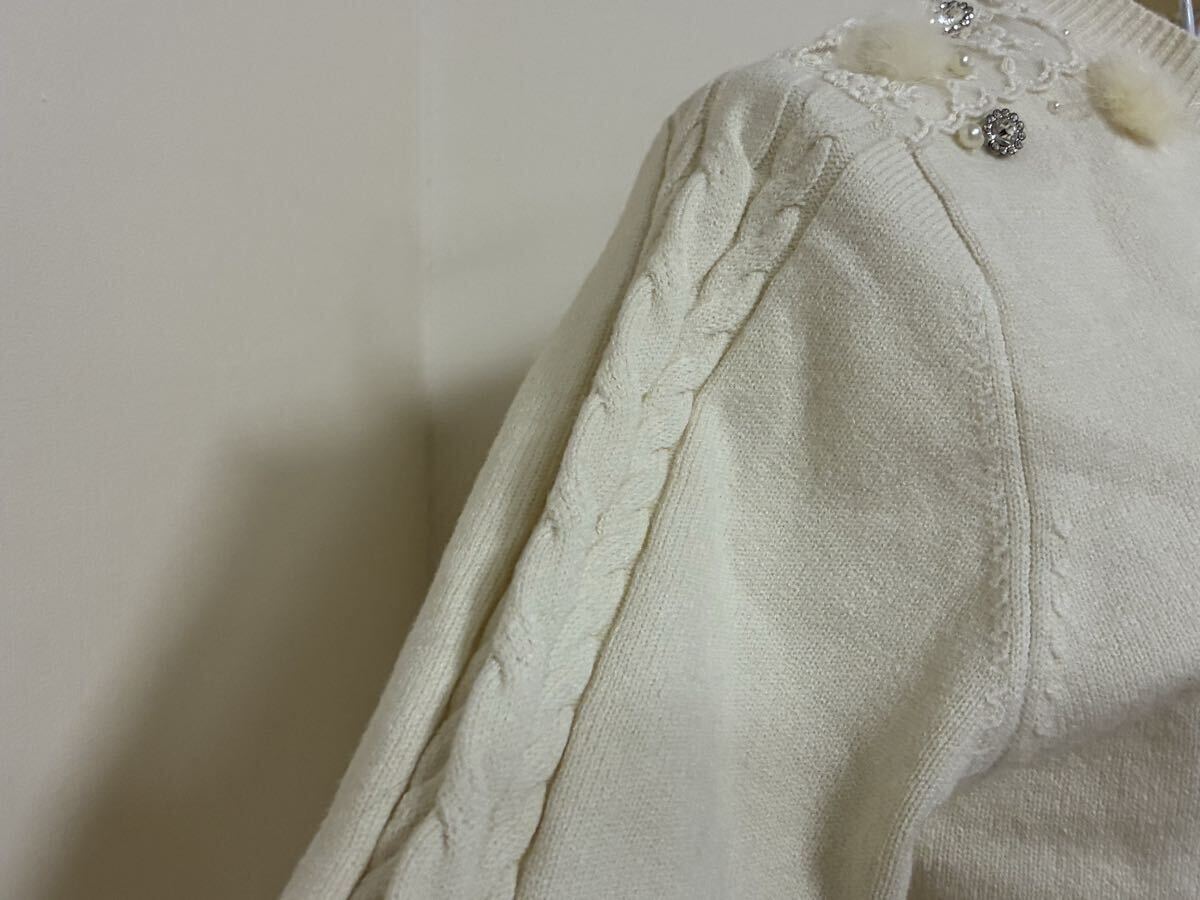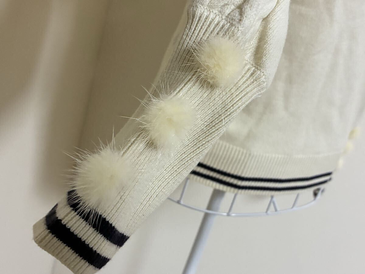 | 自己紹介欄にて発送対応させて頂けない日をお知らせしていますのでご確認をお願いします。 ショッパーは付きません。 サイズ:M 着丈: 約54cm 肩幅: 約 33cm 身幅平置き:約44cm〜(少し伸縮性があります。) 袖丈:約60cm ※素人採寸の為少しの誤差はご容赦ください。 色:ホワイト.キナリ系xコン系 状態:白いusedのお品ですので、小さな汚れやちょっとした毛羽立ち等気にされる方、usedに新品同様のクオリティをお求めの方、話し合いも頂けず評価よりクレームをお申し出になられる方はお控え下さい。 ミンク調ポンポンファーをお袖や肩周りにあしらわれたニットプルオーバーです。 tトレンドのライン使いを取り入れつつ、ビジューやビーズも施されていてカジュアルすぎず大人っぽく着ていただけます。 冬らしいディティールが◎。 ふわもちっとした素材感はきごこちも◎。 一同梱発送、送料について一 佐川急便での発送の際のみ3日間分同梱発送します。 最初の落札日を含む3日間分です。 ご不明な際にはお問い合わせ下さい。 4日目分以降の同梱はお受けしませんので必ずご了承の上ご入札お願いします。 佐川急便の送料は 北海道1000円 東北800円 関東から九州は700円です。 沖縄は1800円 離島は別途中継料金がかかります。 佐川急便以外の発送はお受けしません。 | |||
