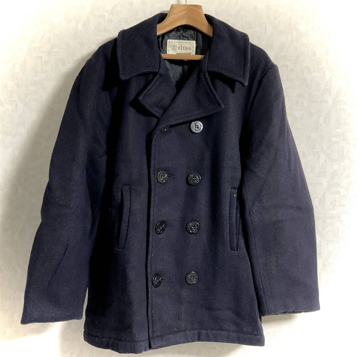 古着 MELTON USA ピーコート ネイビー MEDIUM ※ジャンク/使用感 傷み多   M318