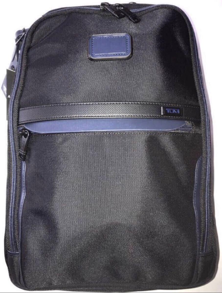 ブラック/ネイビーの「スリム・バックパック」は、スリムなシルエットで、通勤時にハンズフリーの快適さを可能にしながら、ビジネスにも使える外観を兼ね備えます。PCとタブレットのパッド入りのポケット、そしてビジネス・アクセサリーを整理するための内側と外側のポケットが複数あります。