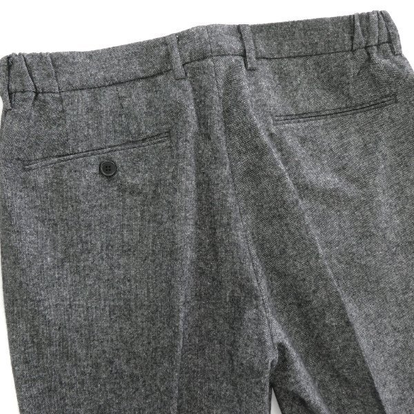 ウール混のホームスパン素材は、しっかりとした厚みがありつつも柔らかな肌触りと暖かみのある素材で、寒い季節も快適に過ごせます。 自然な風合いとさりげない光沢感が、より一層洗練された印象を与えます。 すっきりとしたラインが美しいシルエットを作り出し、大人の上品さとスタイルを追求したパンツです。 【デザイン】 ・テーパードシルエット ・ジッパーフライ ・ノータック ・ウエストゴム入り |