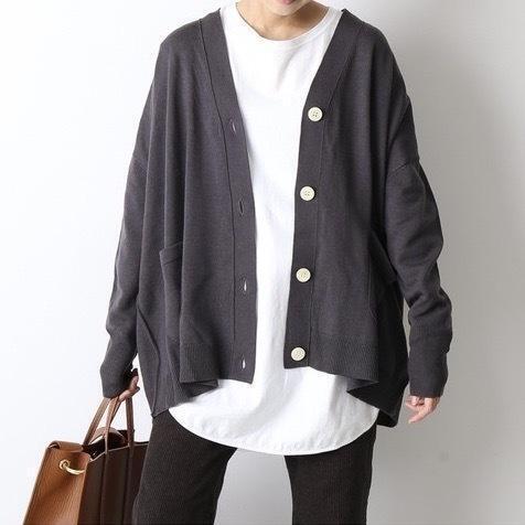 羽織るだけでサマになるゆったりとしたシルエット、あえてはぎ目を目立たせたデザインや大きめのボタンなど、シンプルながらもちょっと気の利いたしゃれ感のある一枚