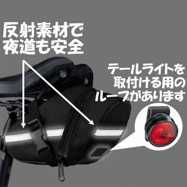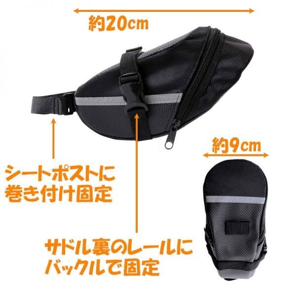 | 商品説明 | ロードバイク クロスバイクで便利な軽量、大容量サドルバッグです シンプルで調節可能なタイプで マンテンバイク ミニベロ 自転車の車種を問わず装着する事ができます よほど特殊なサドルの構造でない限りママチャリでも装着できますよ 完全防水ではありませんが、そこそこの防水性能です 競技志向のこだわり派の方にはオススメできませんが 一度使ってみたかった、最初は安い物で構わない、という方には最適ですよ