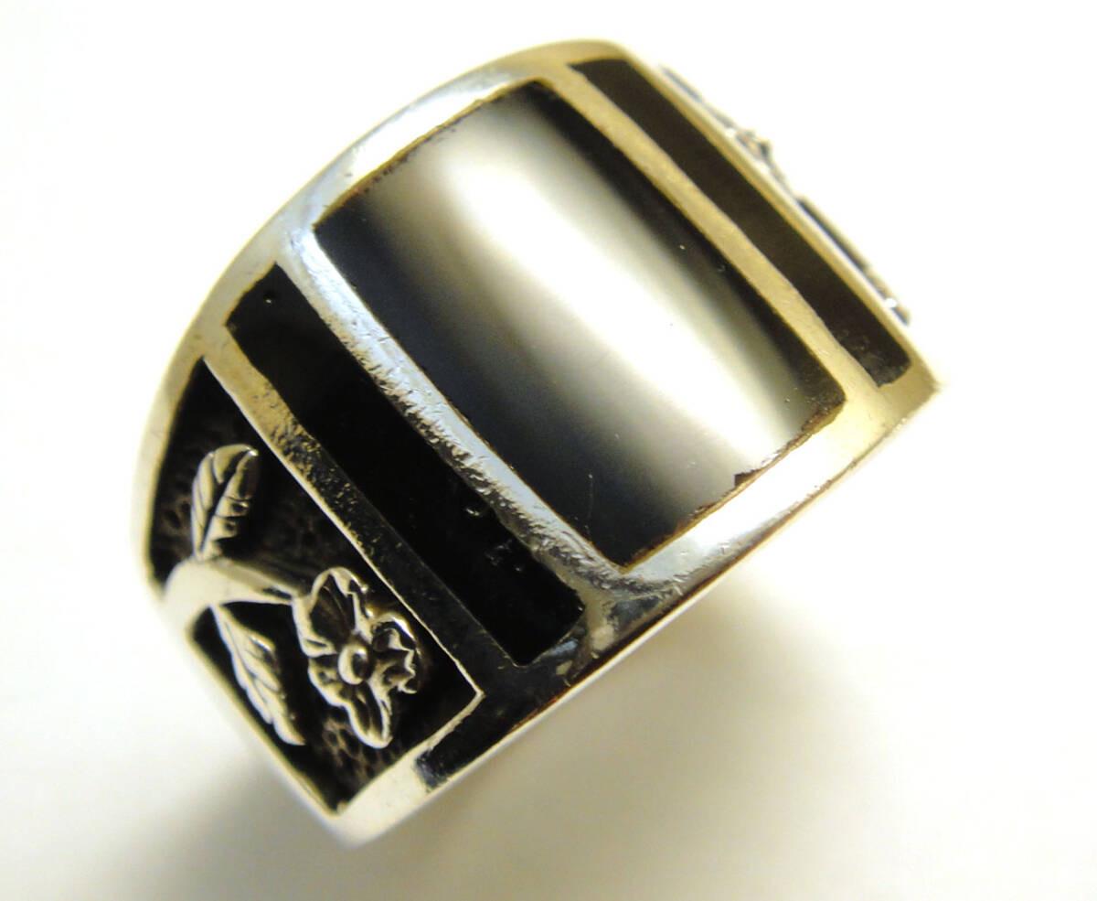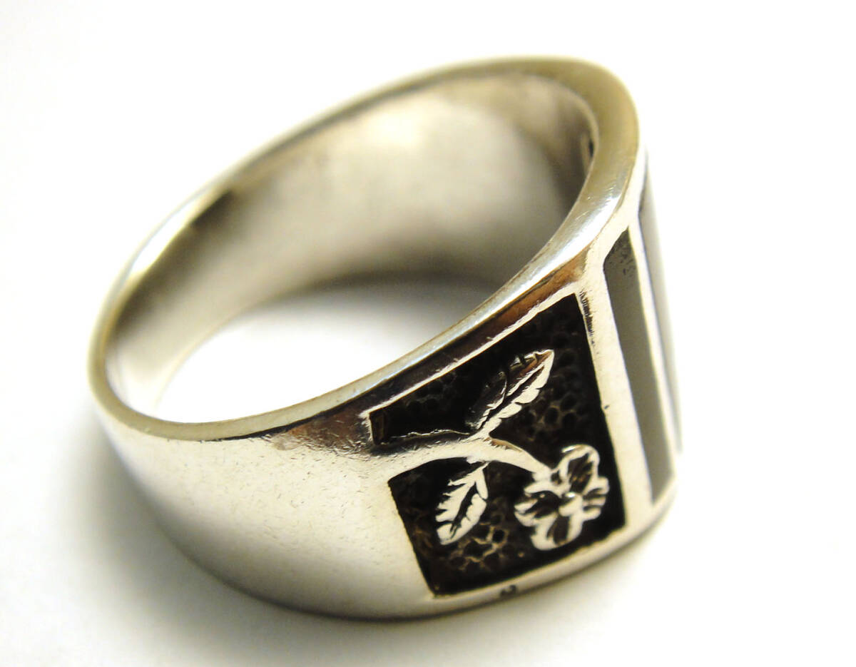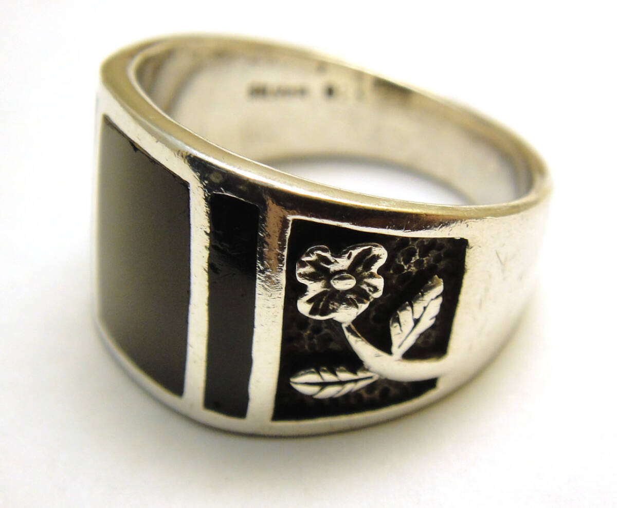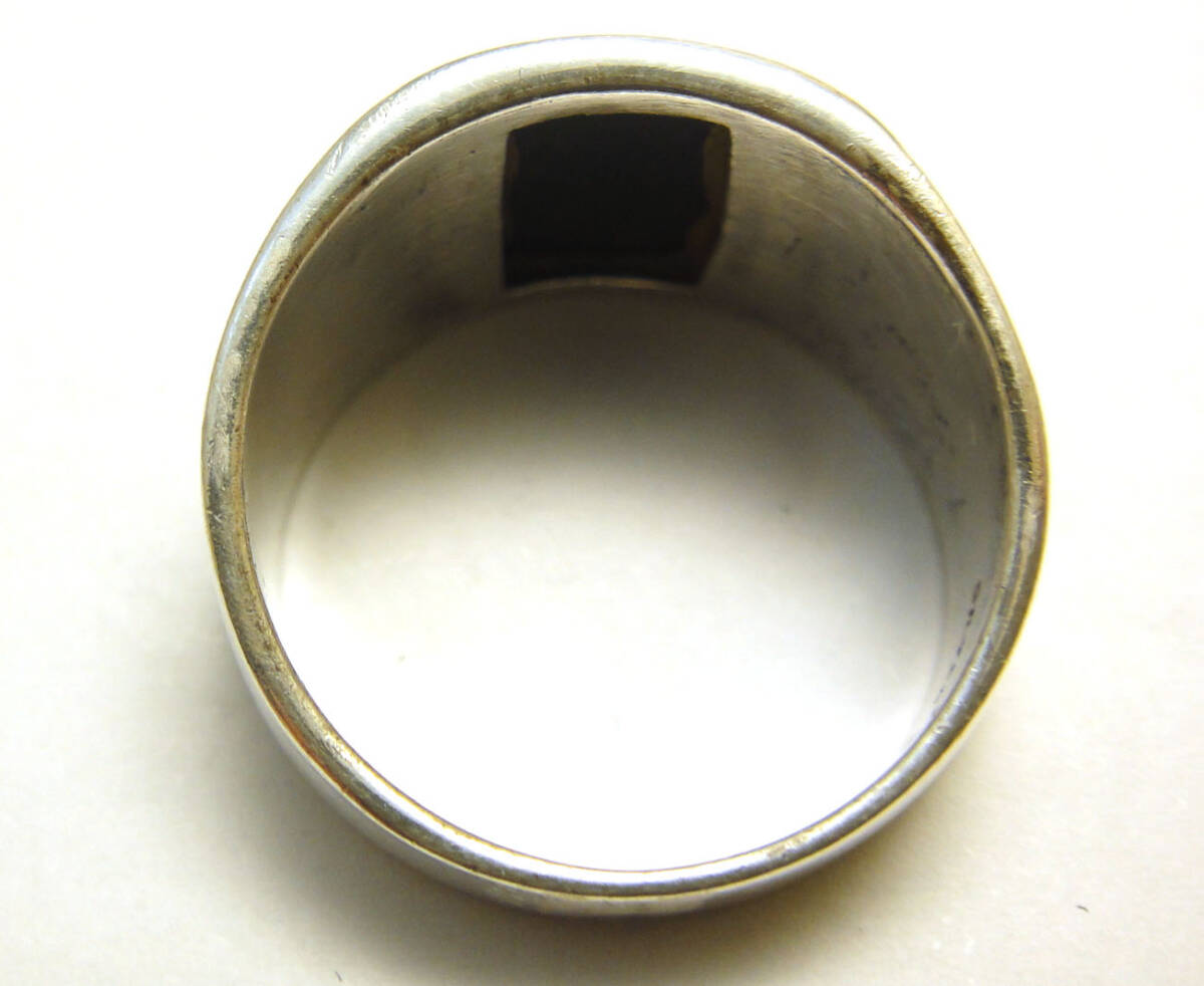 | SP◆20号◆USED洗浄済SILVER925 オニキス 幅太 インレイ ヴィンテージリング 925 | |||