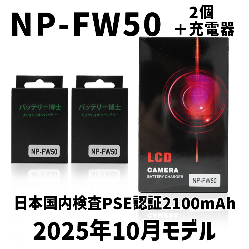PSE認証2025年10月モデル NP-FW50 2個 + USB急速充電器 ミラーレス α5000 α5100 α6000 α6100 α6400 α7S II DSC SLT NEX