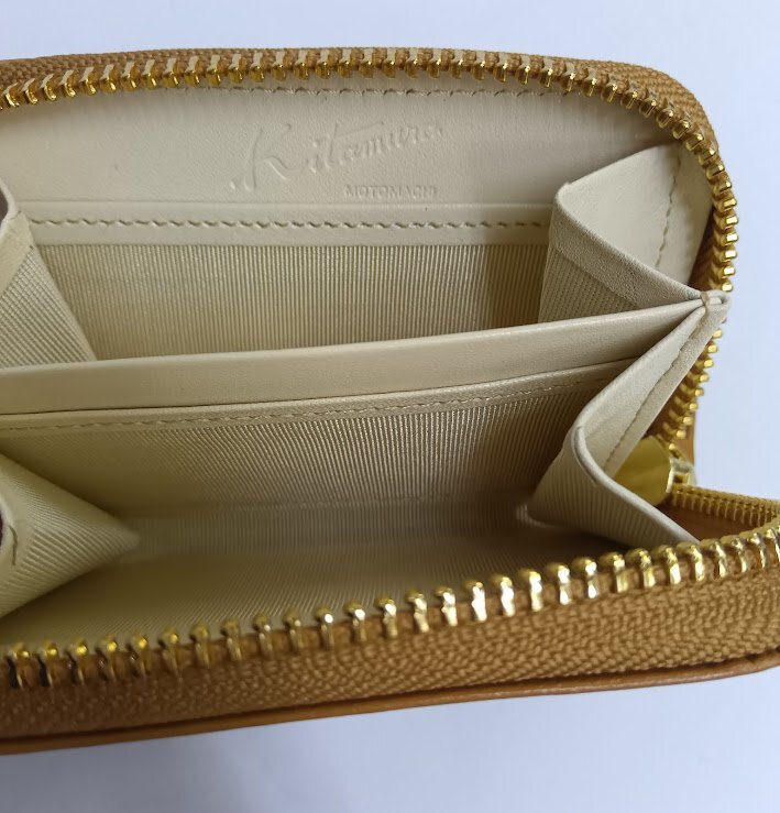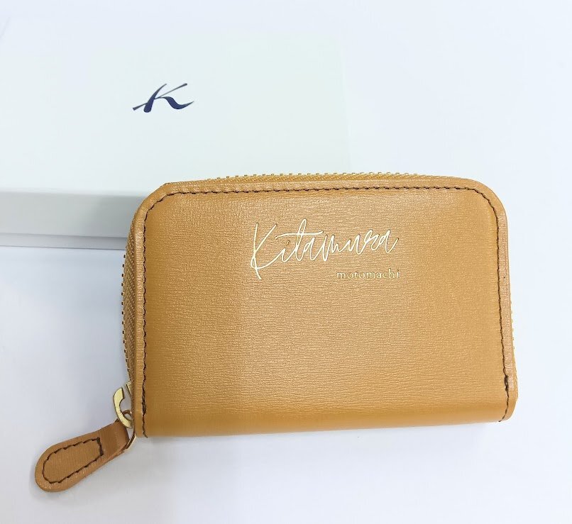 Kitamura/キタムラ☆レザー・小銭入れ キャメル NH0854 61501 定価13000円(税込) ロゴ入り ラウンドファスナー 箱有 未使用 美品【新品】Y251003005