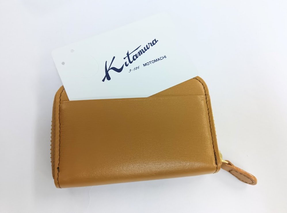 未使用!Kitamura/キタムラ☆レザー・小銭入れ キャメル NH0854 61501 定価13000円(税込) ロゴ入り ラウンドファスナー 箱有