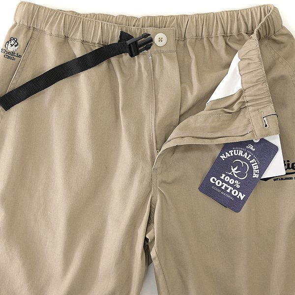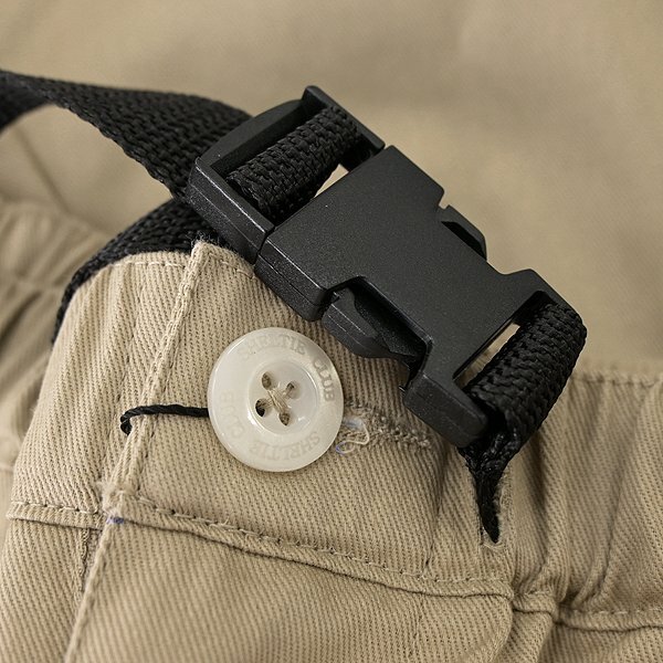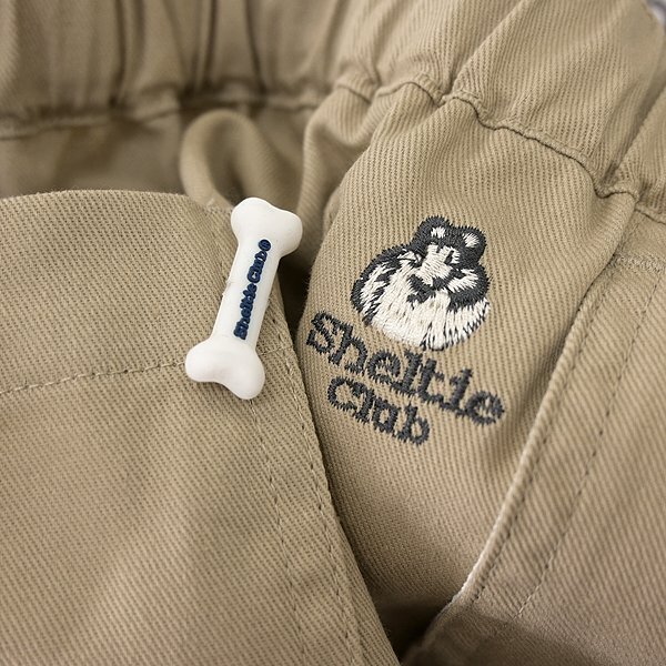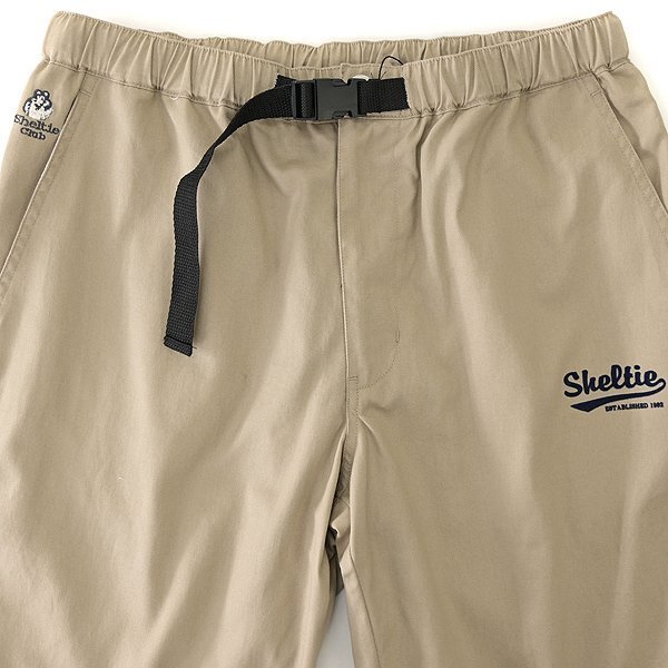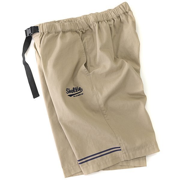 【Sheltie Club】 〈湘南の海〉をテーマとしたブランドコンセプトに沿って、マリンテイストを味付けしたシンプルなスタイルを信条とし、ラフで、気取らず、気張らない、ややゆったりとした着こなしを提案します。 ウエストゴムの快適イージー仕様に加えて、ウェビングベルトを備えたクライミングショートパンツです。 適度に密度やハリを保ちつつ通常よりも通気性を高めた、ライトな風合いのコットンツイル素材を使用しています。 綿100%ですがナチュラルなストレッチ性があり、動作性が良いのも魅力的なポイントです。 ブランドのトレードマークであるシェットランドシープドッグのワンポイント刺繍、ロゴフロッキープリント、後ろポケットに骨をモチーフとしたビス装飾、裾にはマリンテイストなラインプリントが施されています。 【デザイン】 ・ノータック ・ジッパーフライ ・ウエストゴム入り ・ウェビングベルト付き(取り外しできません) |