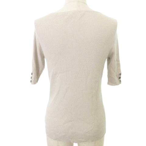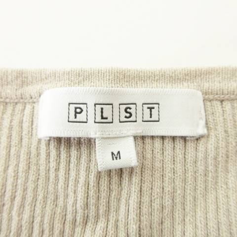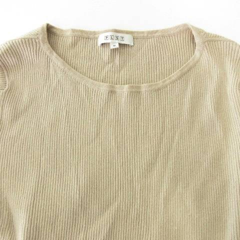 プラステ PLST 美品 カットソー 五分袖 クルーネック ボタン 無地 薄手 Mサイズ ベージュ ■YHS3 レディース
