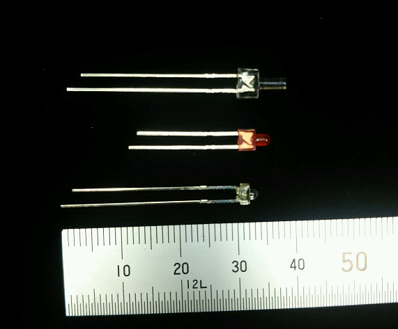 中国製造の凸型LED、先端直径1.8mm、先端長1.5mm(実測値)です。
