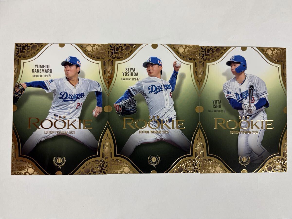 【金丸 夢斗 吉田 聖弥 石伊 雄太】 BBM ベースボールカードセット ルーキーエディションプレミアム 2025 中日ドラゴンズ レギュラーカード 3枚セット