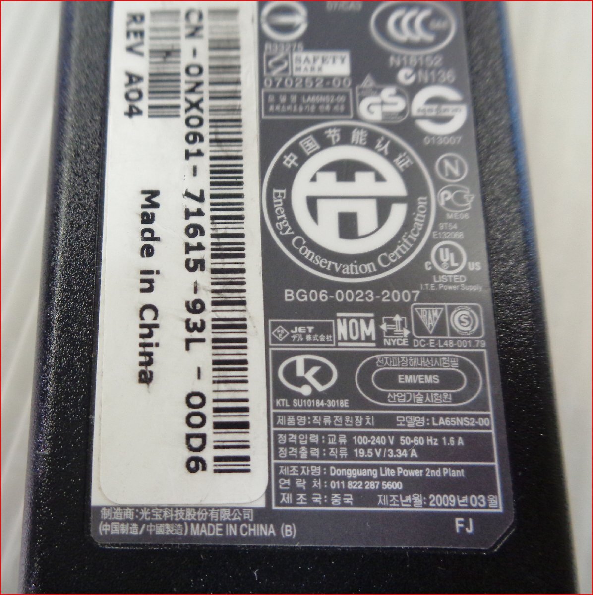 Bana8◆E◆DELL/デル 65W-ACアダプター LA65NS2-00