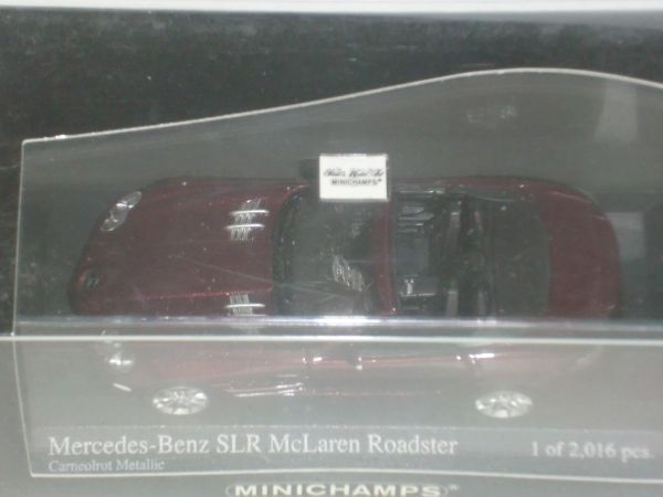 ☆1/43 MiniChamps Mercedes-Benz SLR-McLaren Roadster 2007 レッドメタリックです。箱に少し痛みなどがありますので、ご了承の上入札下さい。商品の状況は写真でご判断の 上、ノ-クレ-ム・ノ-リタ-ンでお願いします。保証はできませんが、定形外郵便での発送も可能です。
