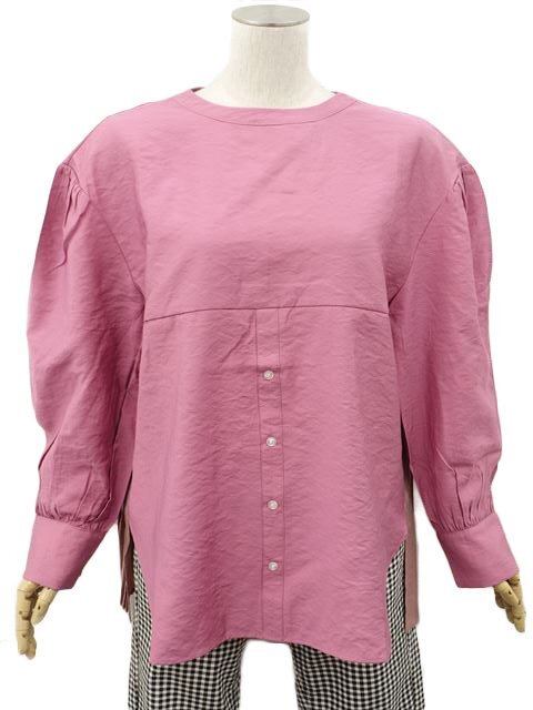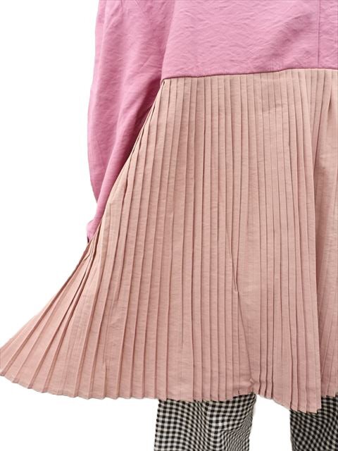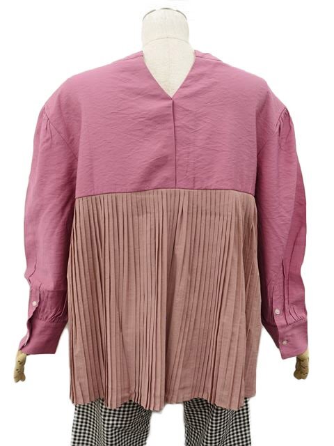 ドロップショルダー&パフスリーブ 長袖 ラウンドネック 洗えるバックプリーツブラウス 2 ピンク 【メール便可】