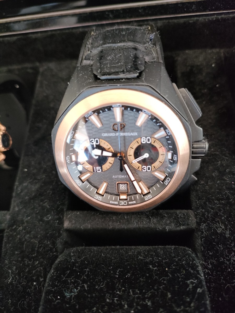 新品ジラール・ペルゴオリジナルラバーベルトをおつけします。