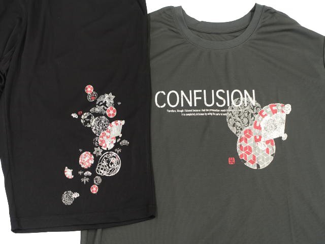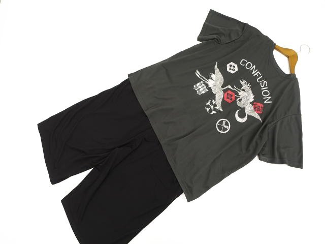 半袖Tシャツ+ハーフパンツ ジャージ上下2点セット 6L グレー系地 ホワイト 英字&ホワイト×レッド×グレー 和柄/ブラック地 ホワイト×グレー×レッド 和柄
