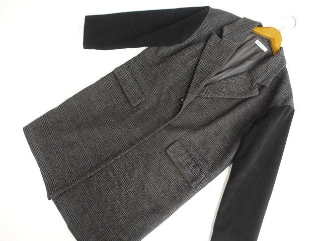 長袖 コート F ブラック×ライトグレー×ブルー×ブラウン グレンチェック柄/ブラック