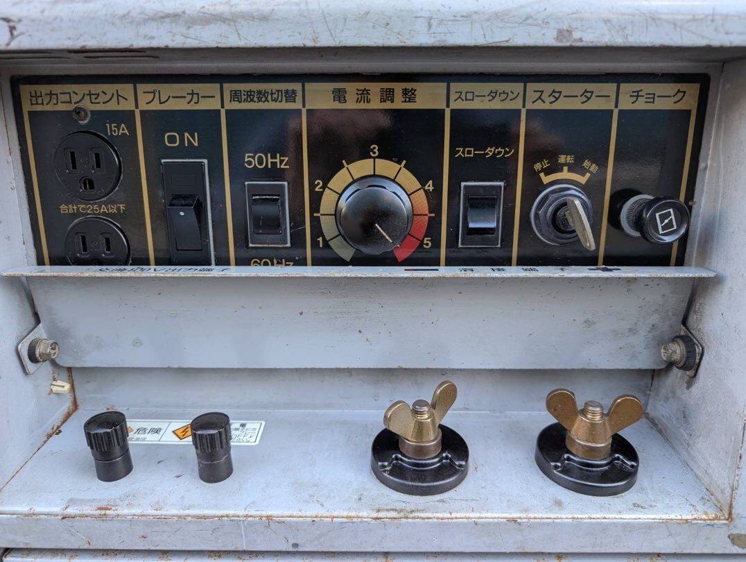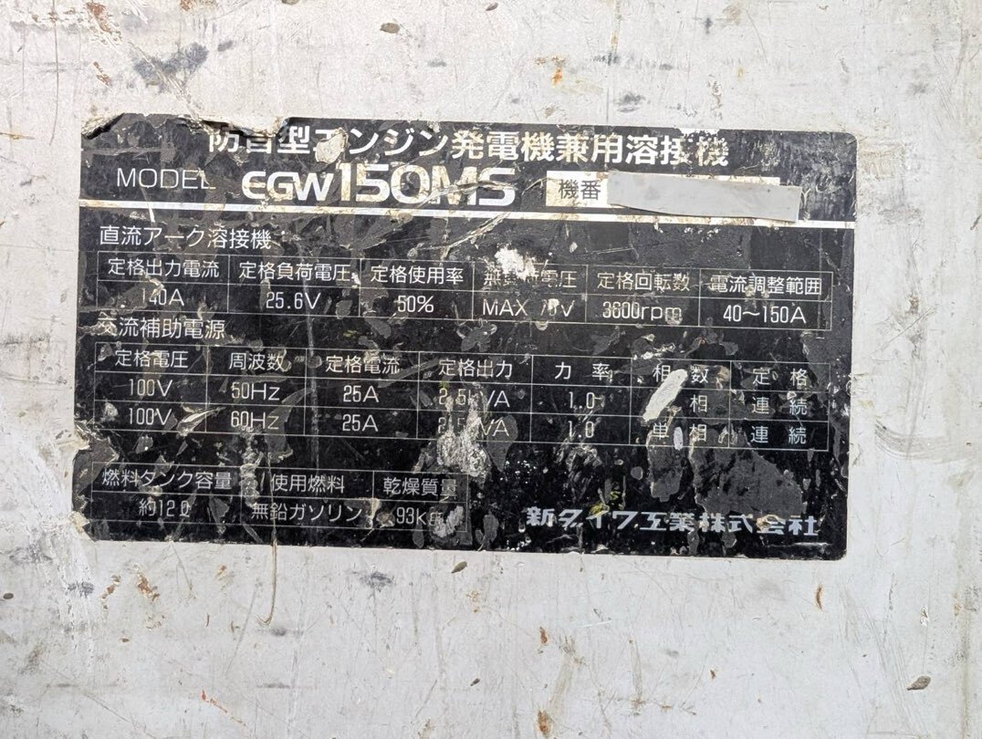 | 商品説明 | (即決)新ダイワ・発電・溶接・ウエルダー・EGW150MS・整備済 です。 形式 EGW150MS(セル始動) ガソリン 4サイクル 50/60Hz(切り替え式) 適用溶接棒 2.0~3.2mm 補助電源100V 2.5KVA 25A 乾燥重量 93Kg エンジンオイル交換 キャブレターオーバーホール エアーエレメント清掃 バッテリー充電(YTX14-BS) 燃料タンク、コック清掃 清掃、点検、調整 再塗装していません。 動作OK(2.0~3.2ミリ溶接棒テスト済、発電テスト済) ※整備済ですので不具合ありません。 全長713 全幅484 全高540 |