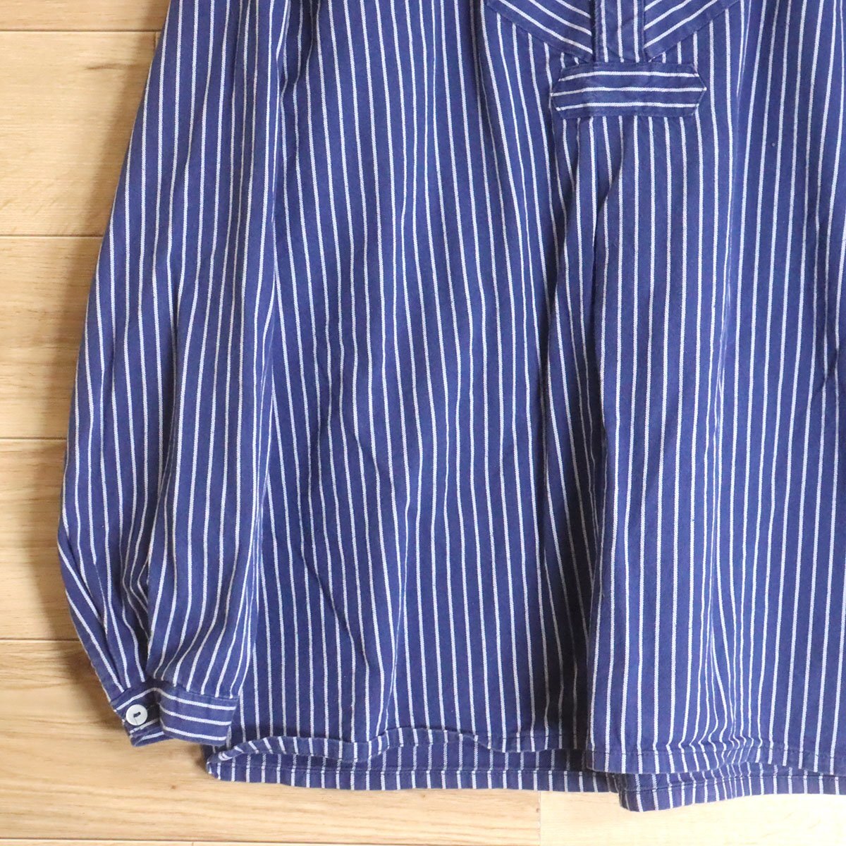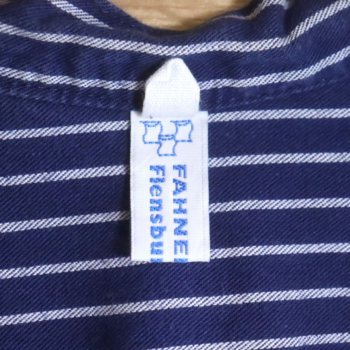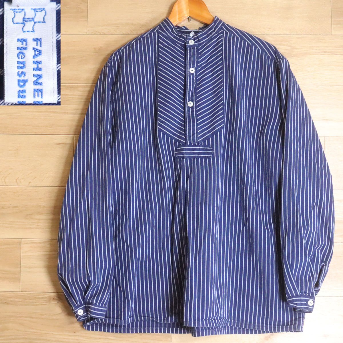 F12O/R6.3-1 ユーロ古着 FAHNEN-FISCHER ジャーマンフィッシャーマンシャツ ジャーマンワーク ストライプ柄 ドイツ L ノーカラー