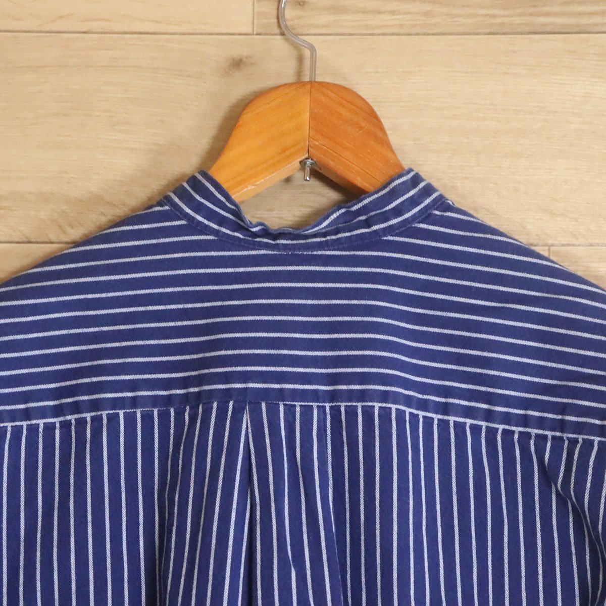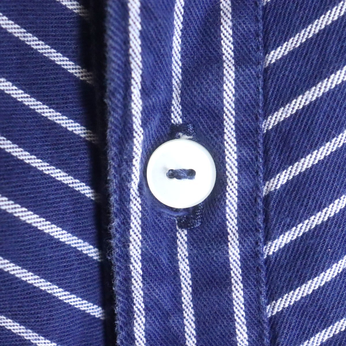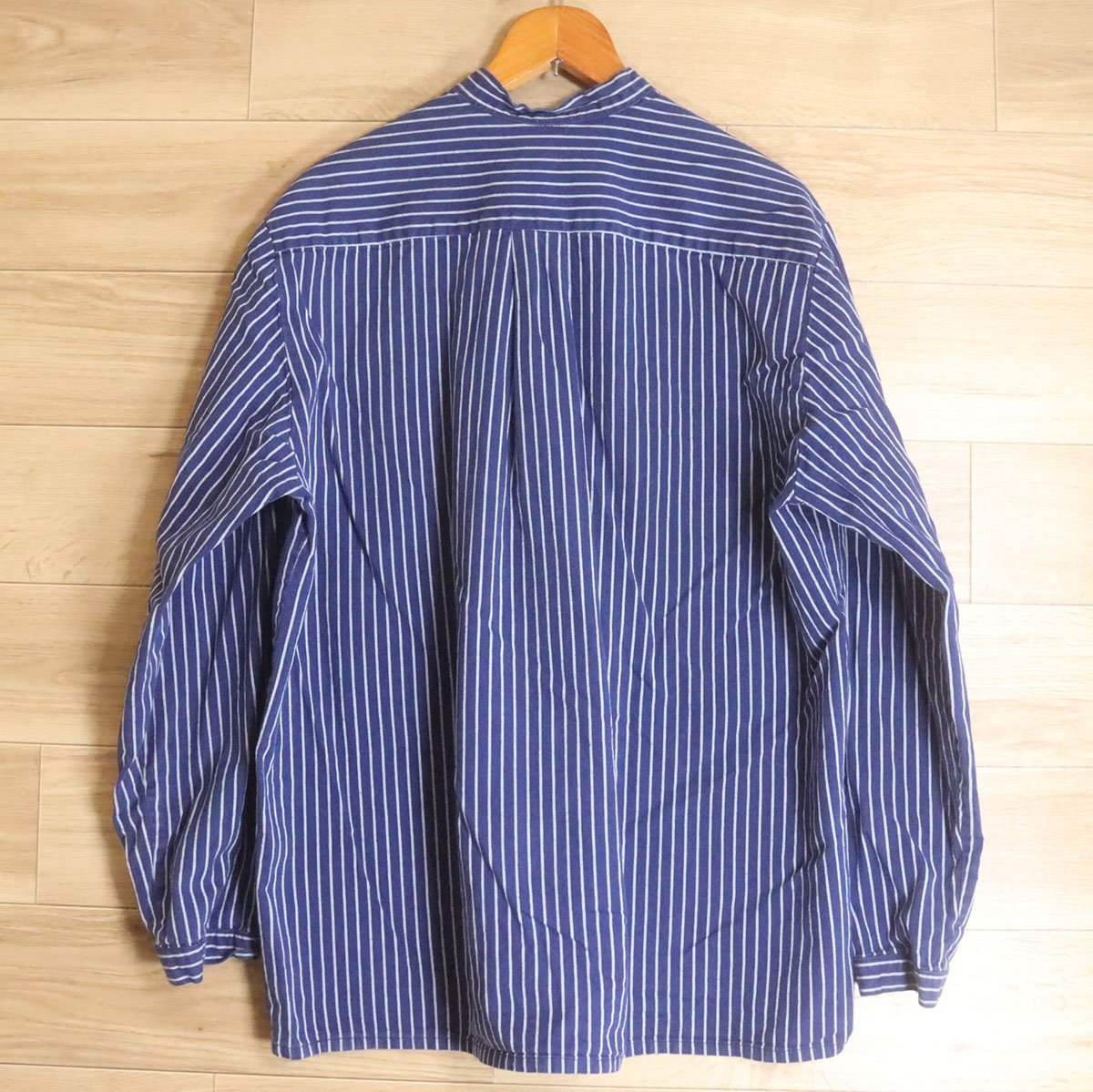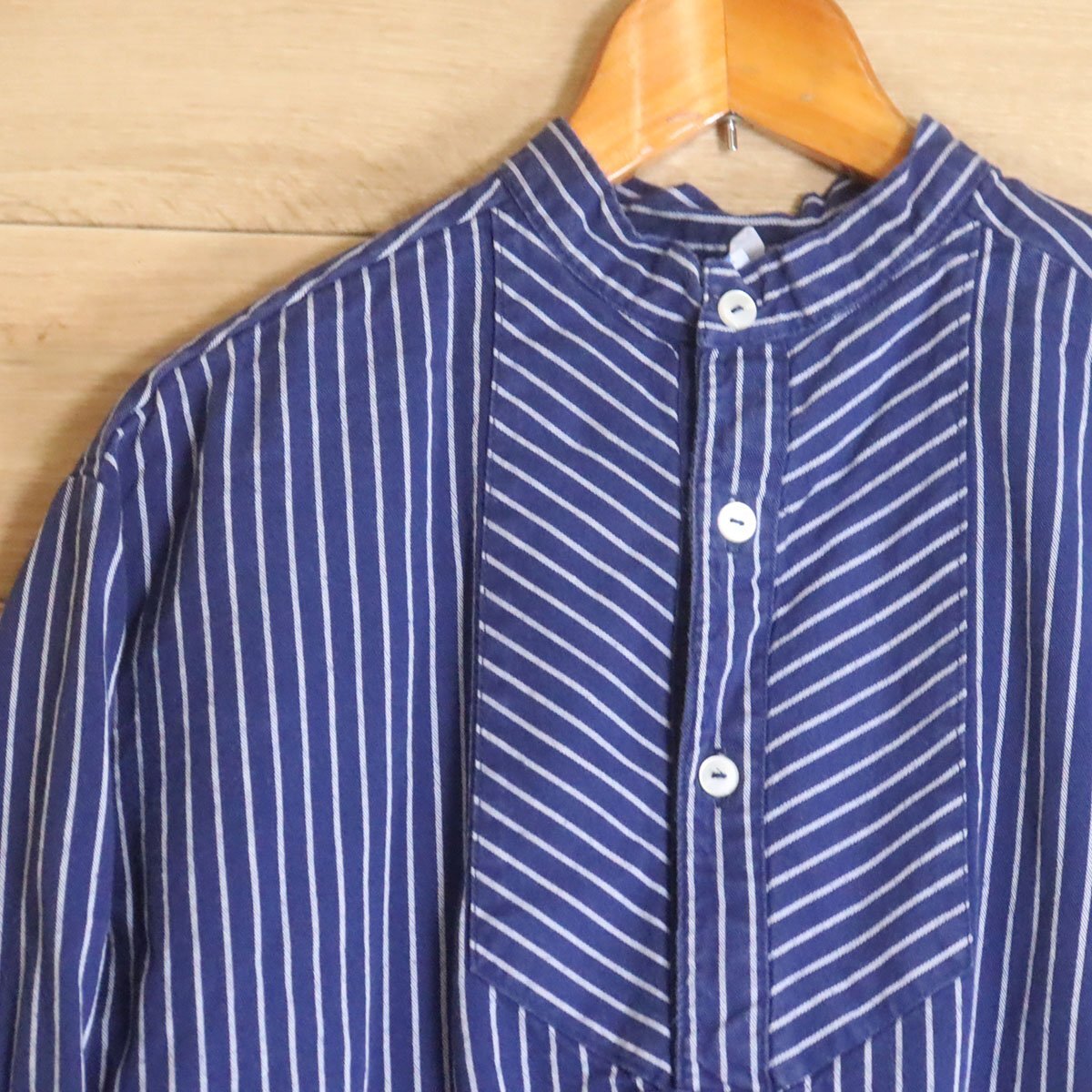 F12O/R6.3-1 ユーロ古着 FAHNEN-FISCHER ジャーマンフィッシャーマンシャツ ジャーマンワーク ストライプ柄 ドイツ L ノーカラー