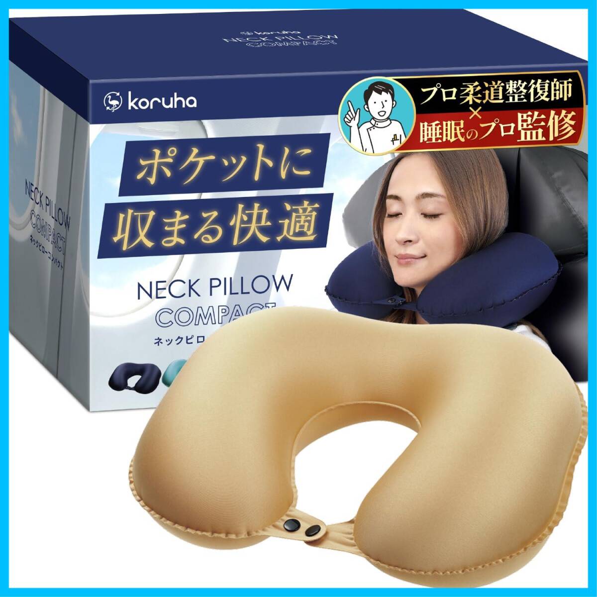 ネックピロー コンパクト【整体師×睡眠改善インストラクター監修】ポンプ式 軽量 エアー 飛行機 車 新幹線 首枕【MONOQLO ベストバイ受賞店】 neck pillow トラベルピロー 長距離 旅行 低反発 携帯枕 クッション 便利グッズ 快適グッズ (キャメル)
