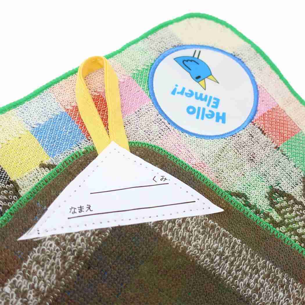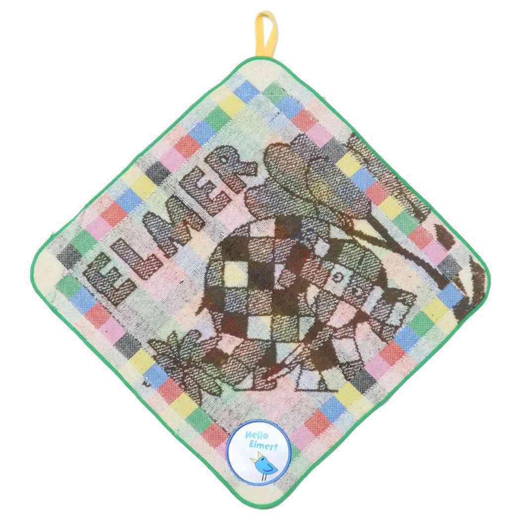 保育園・幼稚園・小学校での必需品 かわいいループ付きタオル 人気絵本[ぞうのエルマー]のかわいいタオルシリーズこちらはフックなどに引っ掛けてご使用いただける便利なループ付きタオルです。とっても肌触りの良いコットン100%素材です裏側に名前が書けるネームタグも付いていますかわいいキャラタオルいろいろあるのでお気に入りで揃えてくださいサイズ:約330x330mm