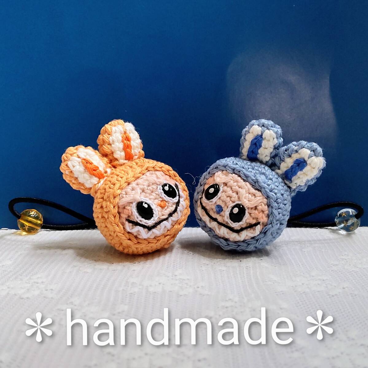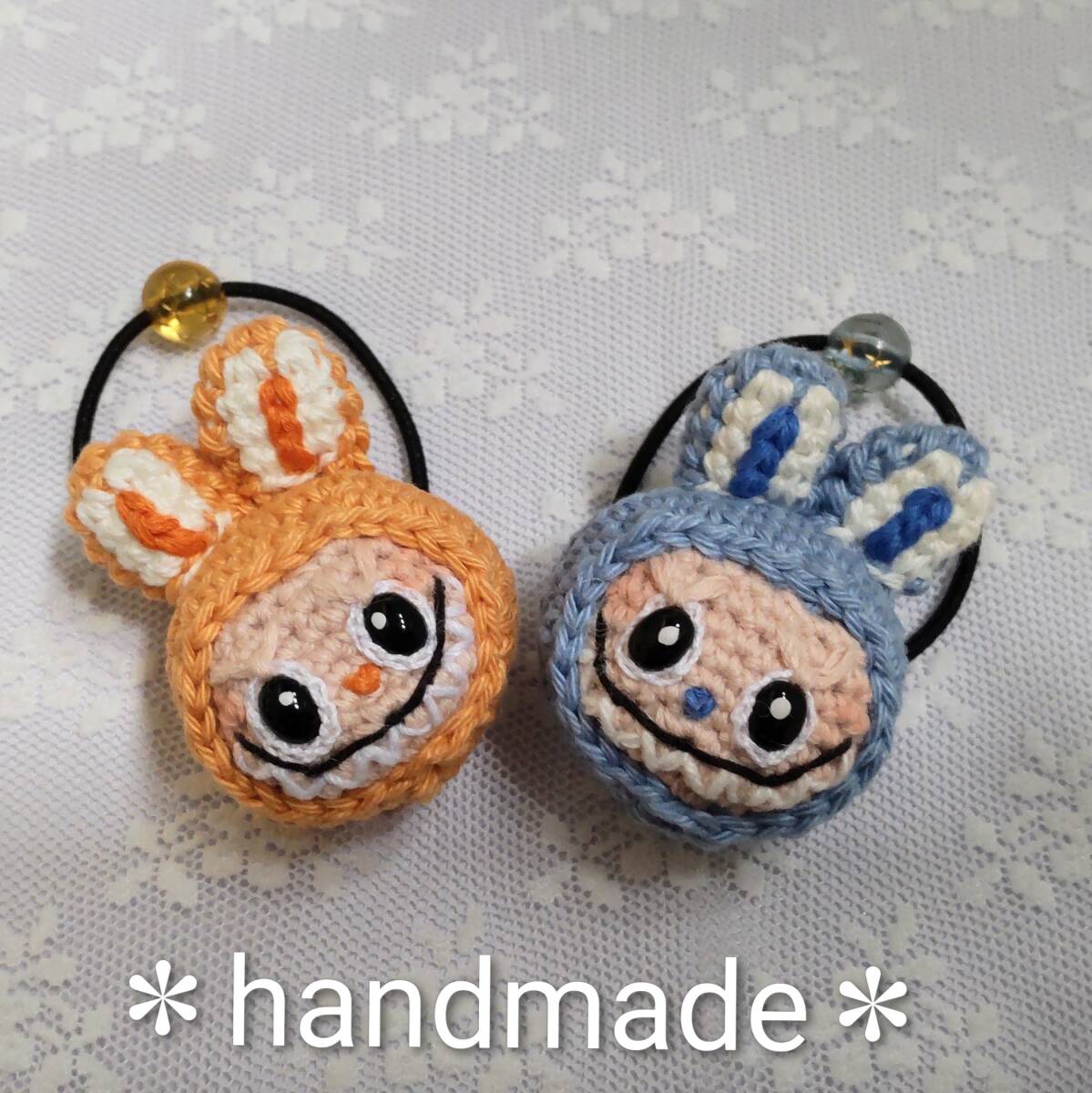 ハンドメイドあみぐるみ★ヘアゴム2個組★ラブブ風