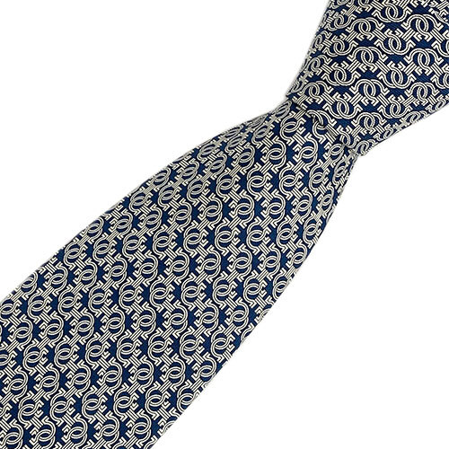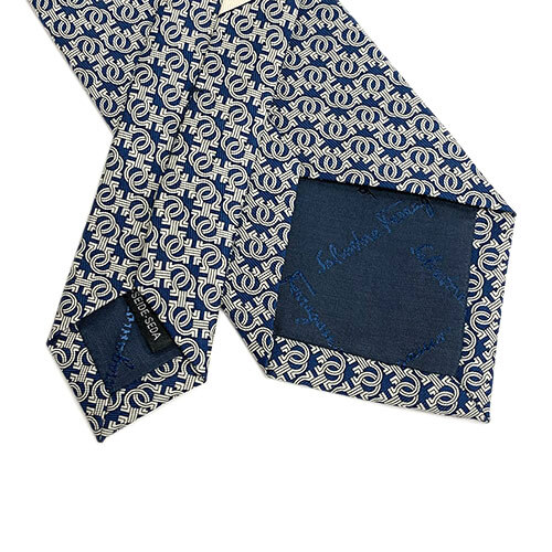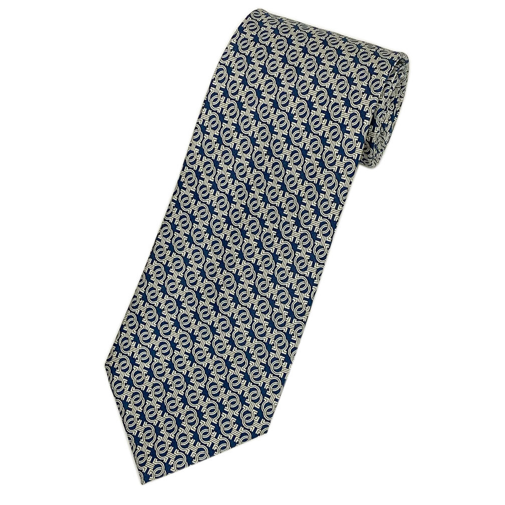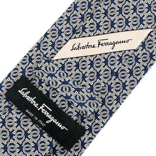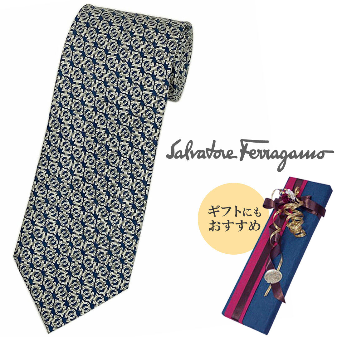 フェラガモ ブランド ネクタイ サルヴァトーレ・フェラガモ シルク 100% ガンチーニ ネイビー アイボリー 紺 41237