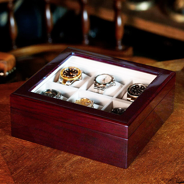 透明窓付きの蓋で、ケースを開けずに中身を確認でき、時計をより便利に管理可能です。
