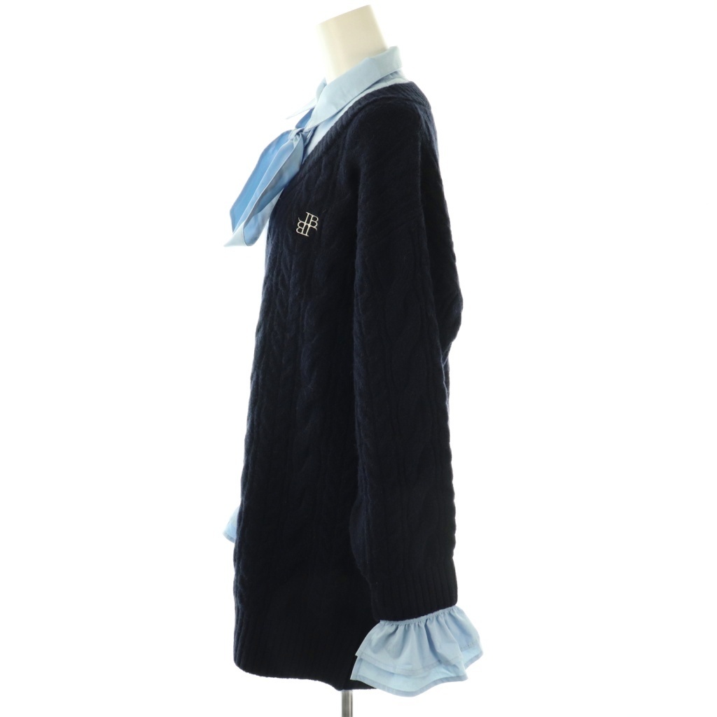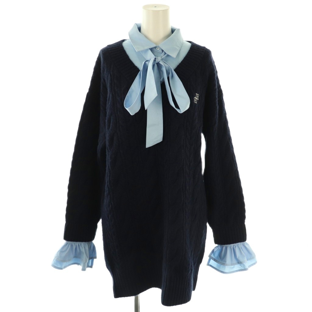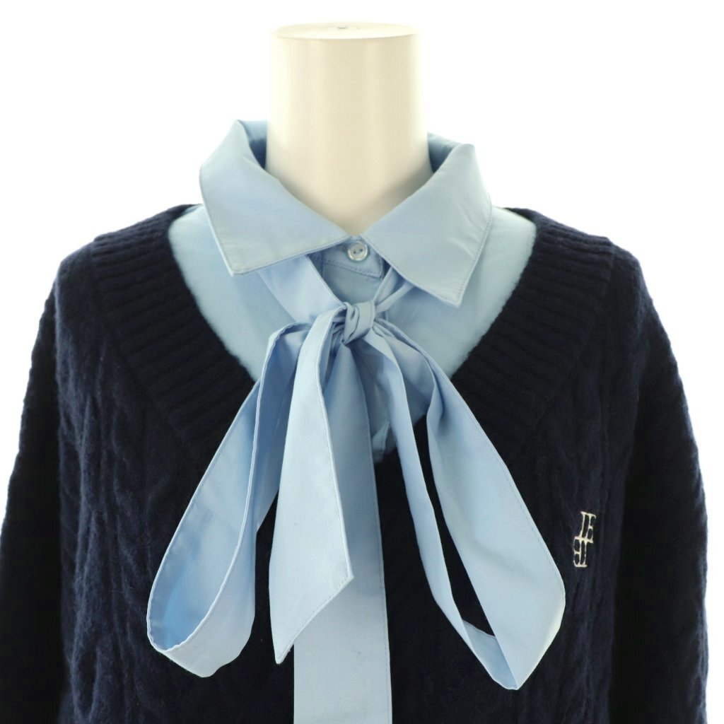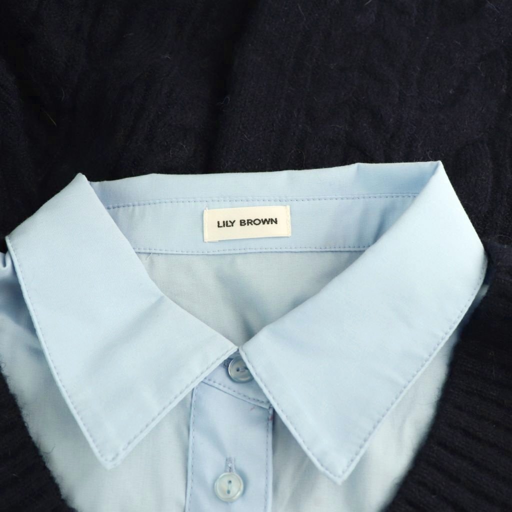 リリーブラウン Lily Brown 25AW リボンタイ付きシャツドッキングワンピース F ネイビー ライトブルー /DO ■OS レディース