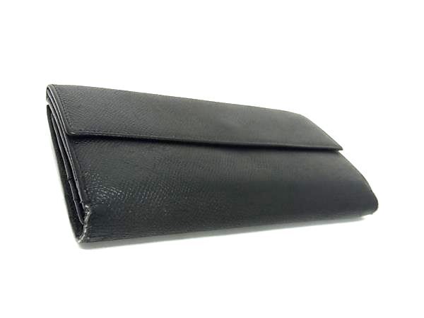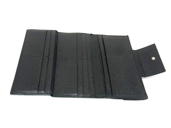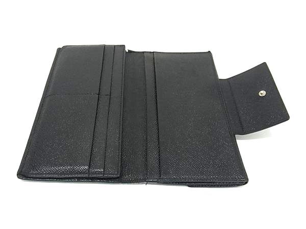 1円 BVLGARI ブルガリブルガリ レザー Wホック 三つ折り 長財布 ウォレット 小銭入れ 札入れ メンズ レディース ブラック系 FQ3000