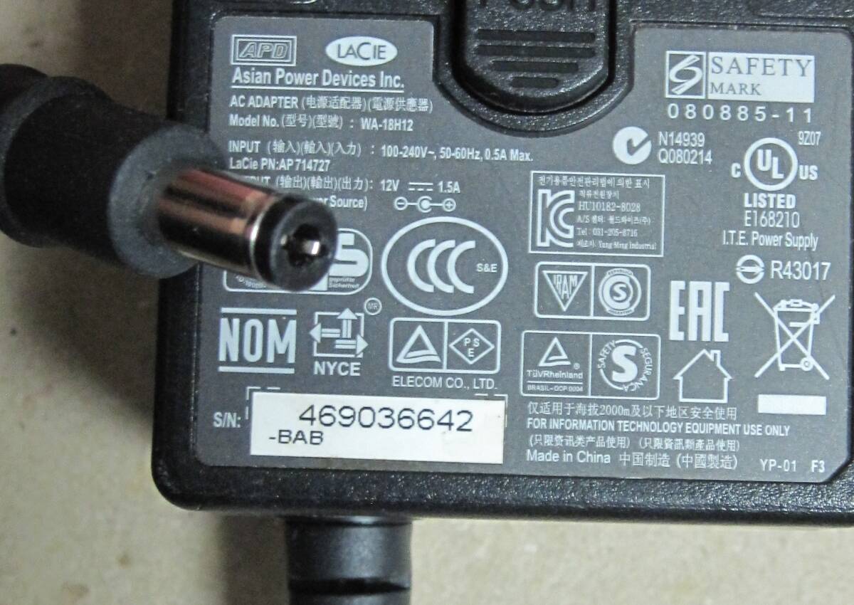 エレコム(APD製)のスイッチングACアダプタ WA-18H12 (入力:AC100-240V/出力:DC12V 1.5A)、DC側のプラグ外径5.5mm×内径2.5mmのセンタープラスです。中古ですので動作不良以外の擦り傷・日焼けなどはノークレームで良い方のみお願いします。なお当方が対応可能な時間等について必ず自己紹介の記載内容をご確認頂き、ご了承頂ける方のみ入札をお願い致します。
