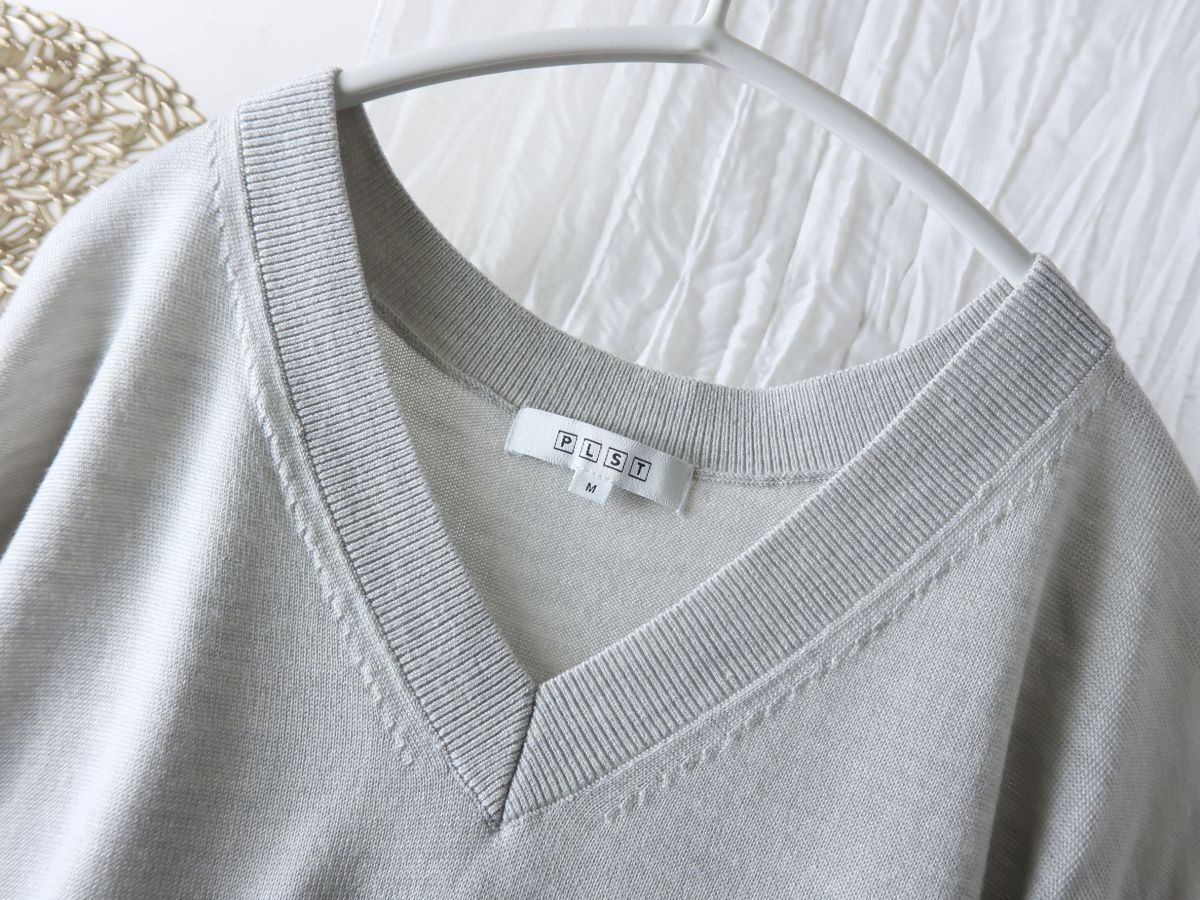 超美品☆プラステ PLST☆洗える エクストラファインメリノシルク Vネックセーター Mサイズ☆A-O 6039