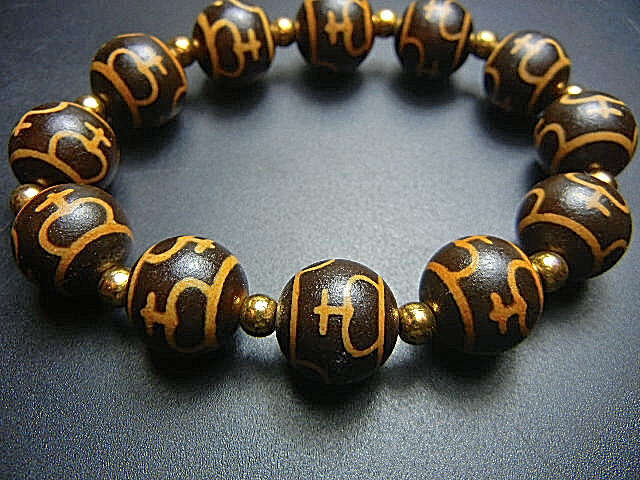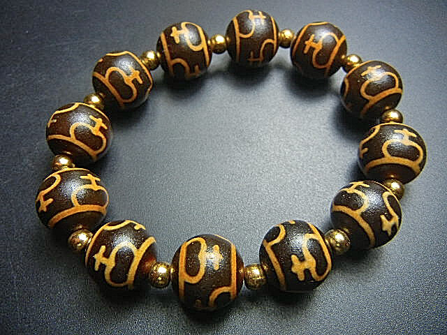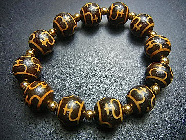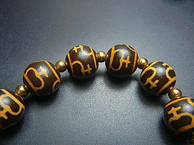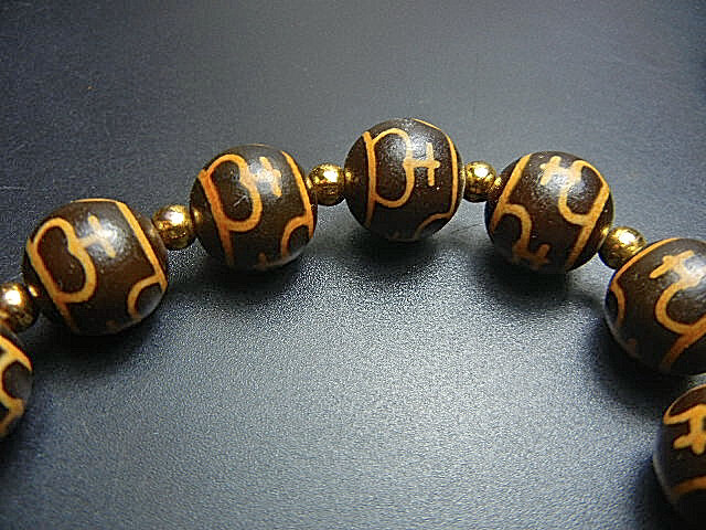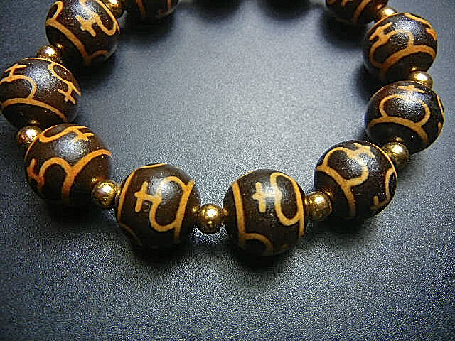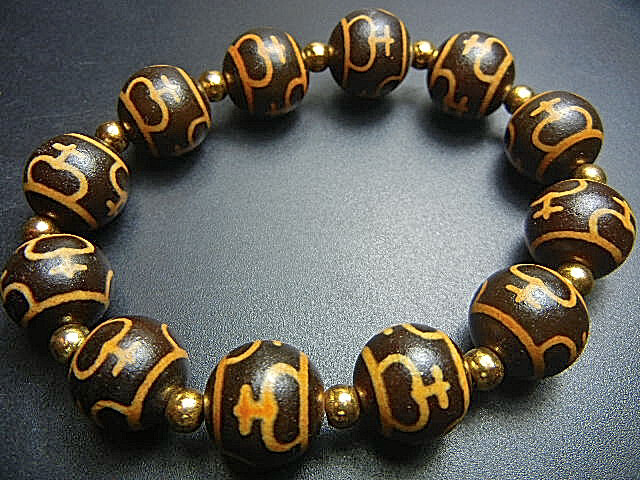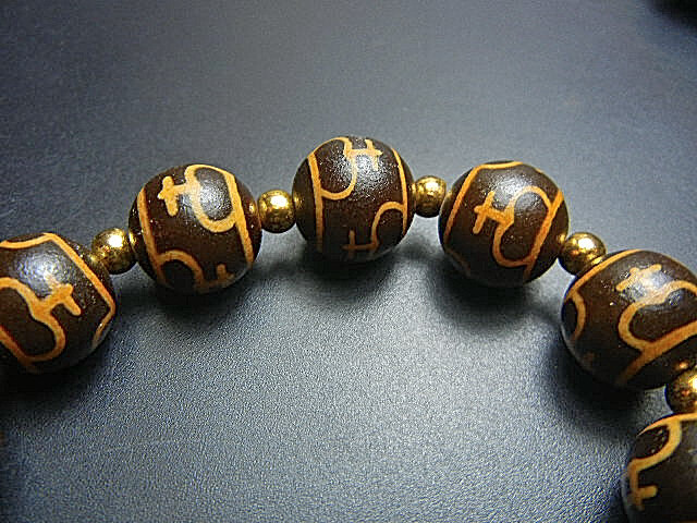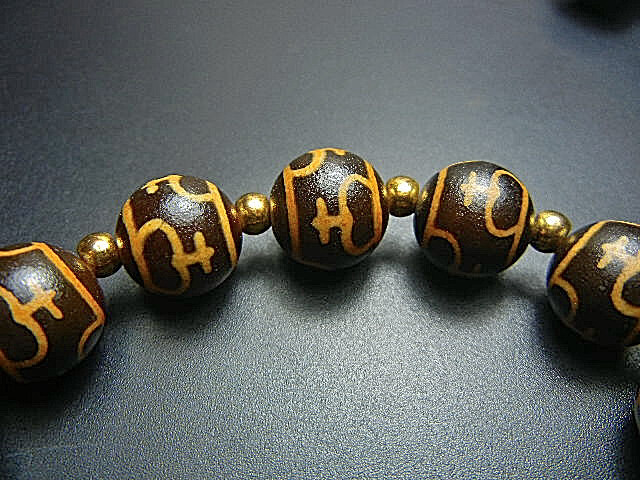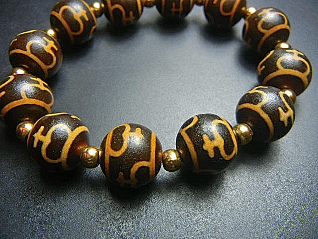 ★西蔵天珠数珠★JFV3770 最上級牙黄  宝瓶天珠  数珠 14mm超勧め