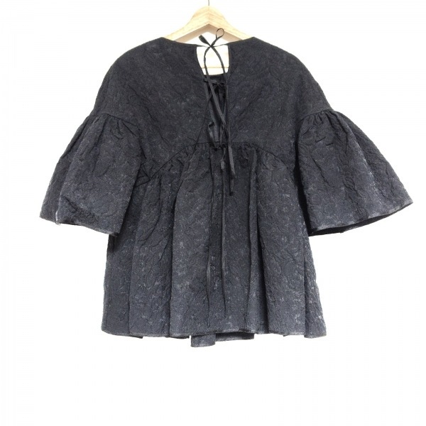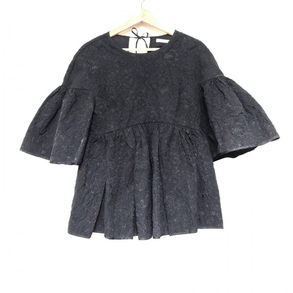 セシリー バンセン CECILIE BAHNSEN 七分袖カットソー サイズUK 6 - 黒 レディース クルーネック/シワ加工/リボン トップス