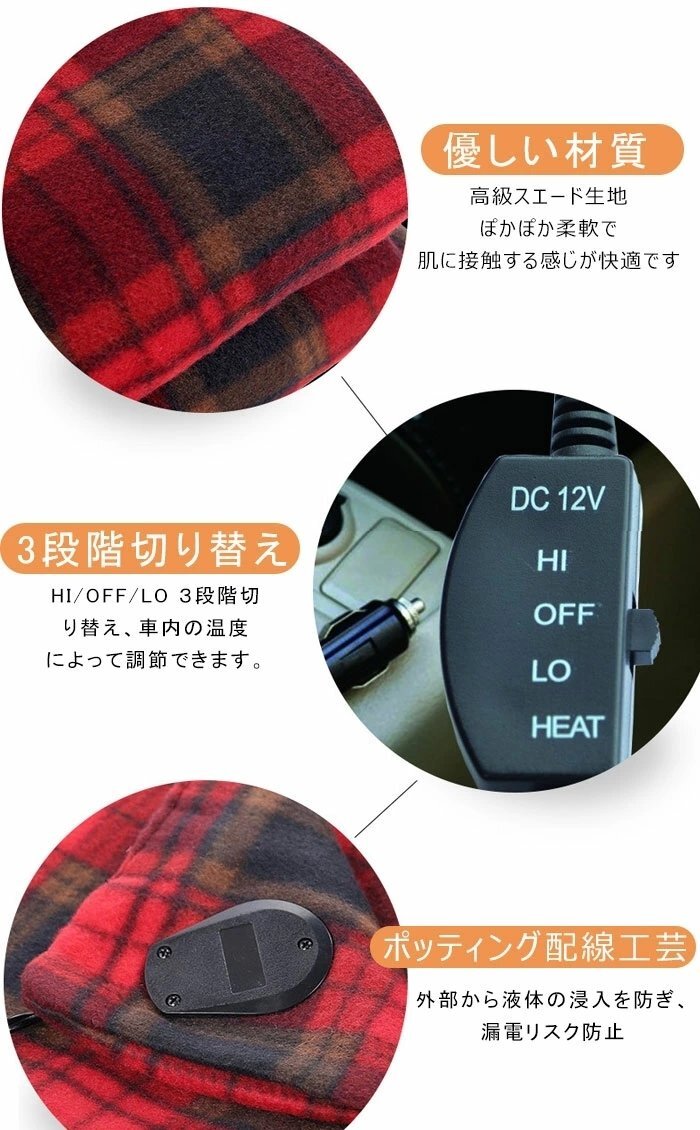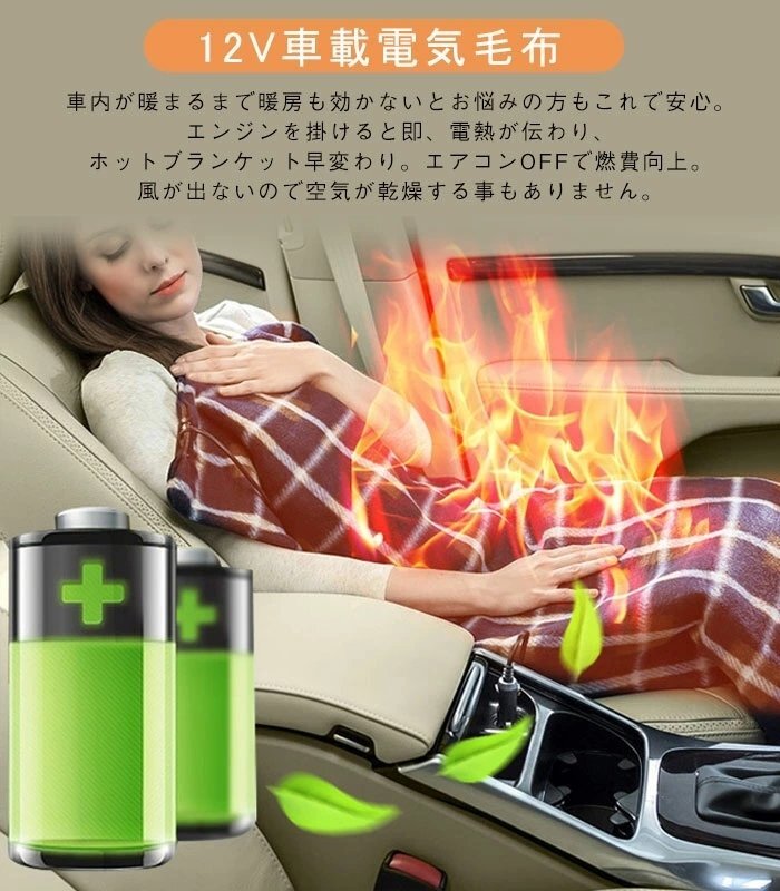 12V車用 電気毛布 車載毛布 多機能カー毛布 防寒保温 快速加熱 簡単操作 省エネルギー 車載用品3段階切り替電気毛布 12V暖房器具 防寒保温