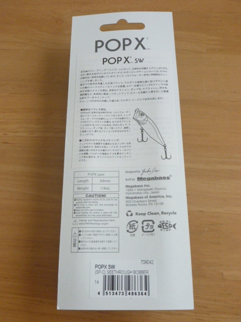 新品 Megabass メガバス POPX SW ポップX Limited Color SP-C 限定 限定カラー SEETHROUGH BOBBER