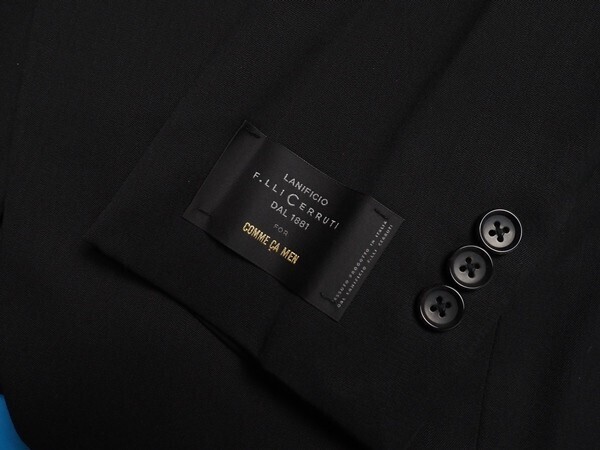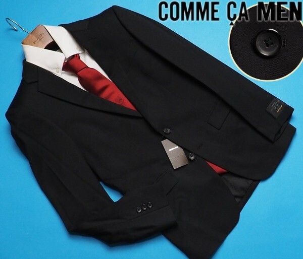 新品定価5万円 COMME CA MEN コムサメン 秋冬『チェルッティ イタリア製生地』Super110S ギャバジン 無地 ジャケットL黒(05) 01GI03