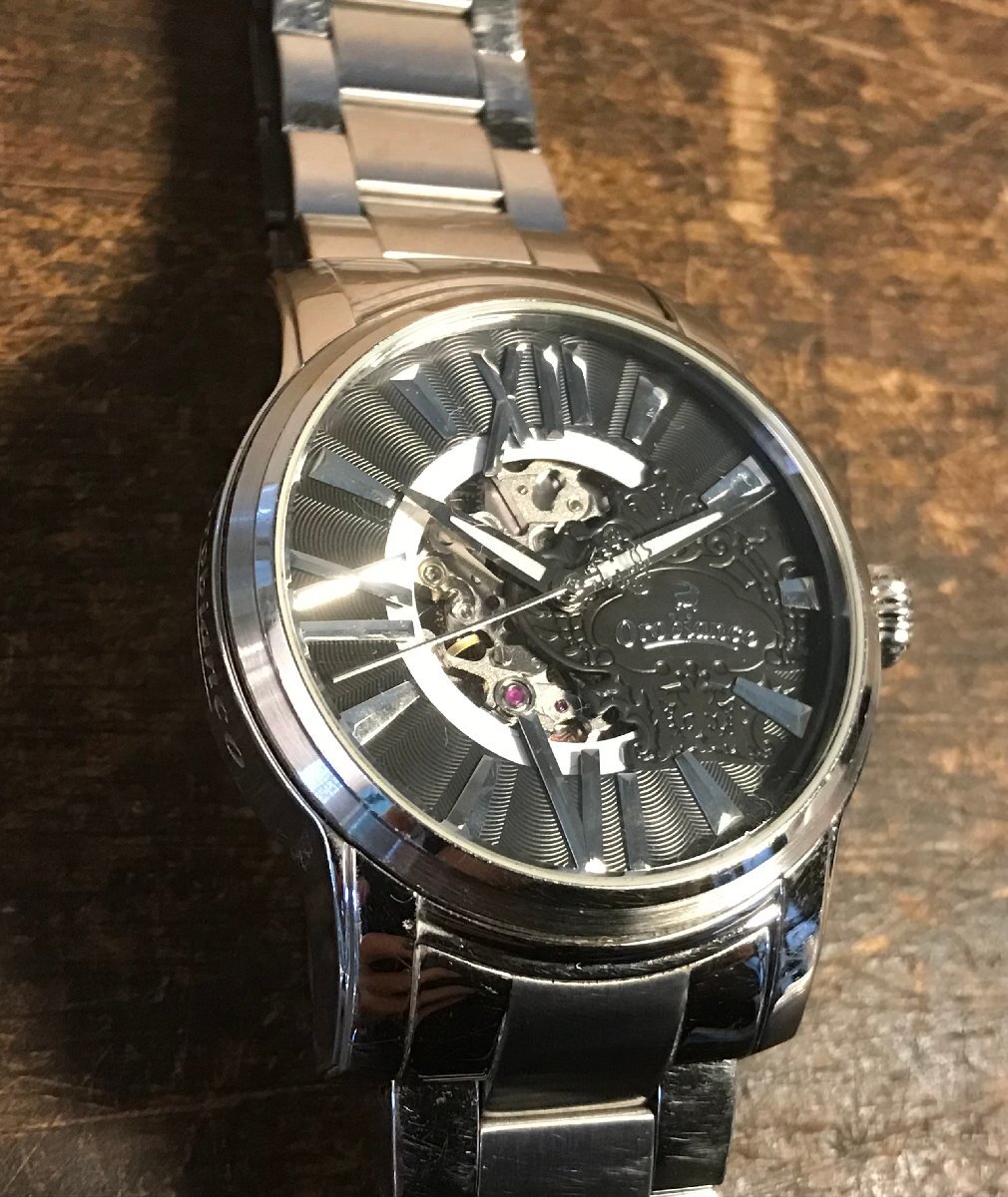 AB-0369■送料込■Orobianco 腕時計 メンズ AUTOMATIC 自動巻き 21JEWELS スケルトン アンティーク レトロ 167g●現状動作品/くATら