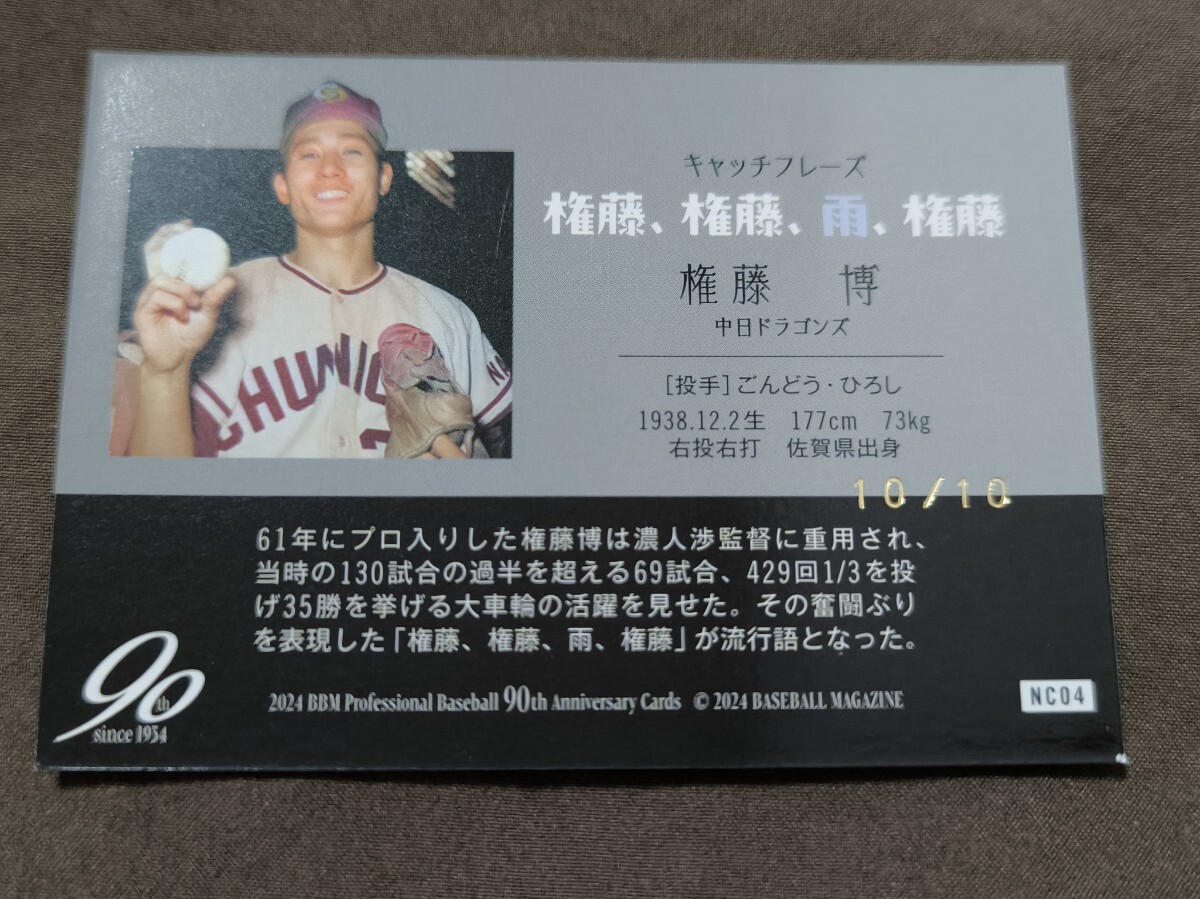 Z035: BBM 2024 プロ野球 90周年 NC04 権藤博/権藤、権藤、雨、権藤 中日「キャッチフレーズ」10枚限定 ラストナンバー パラレル