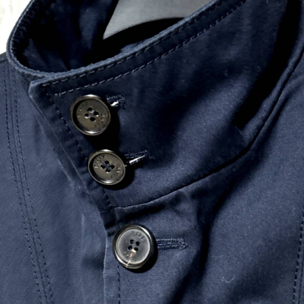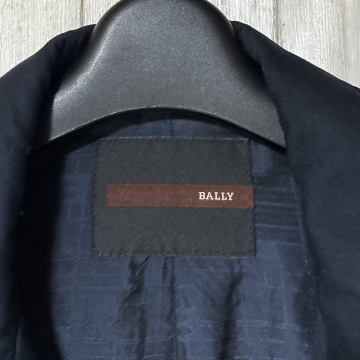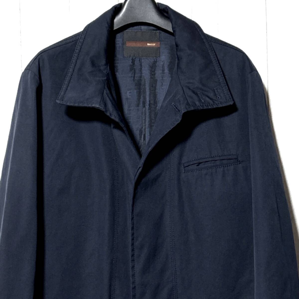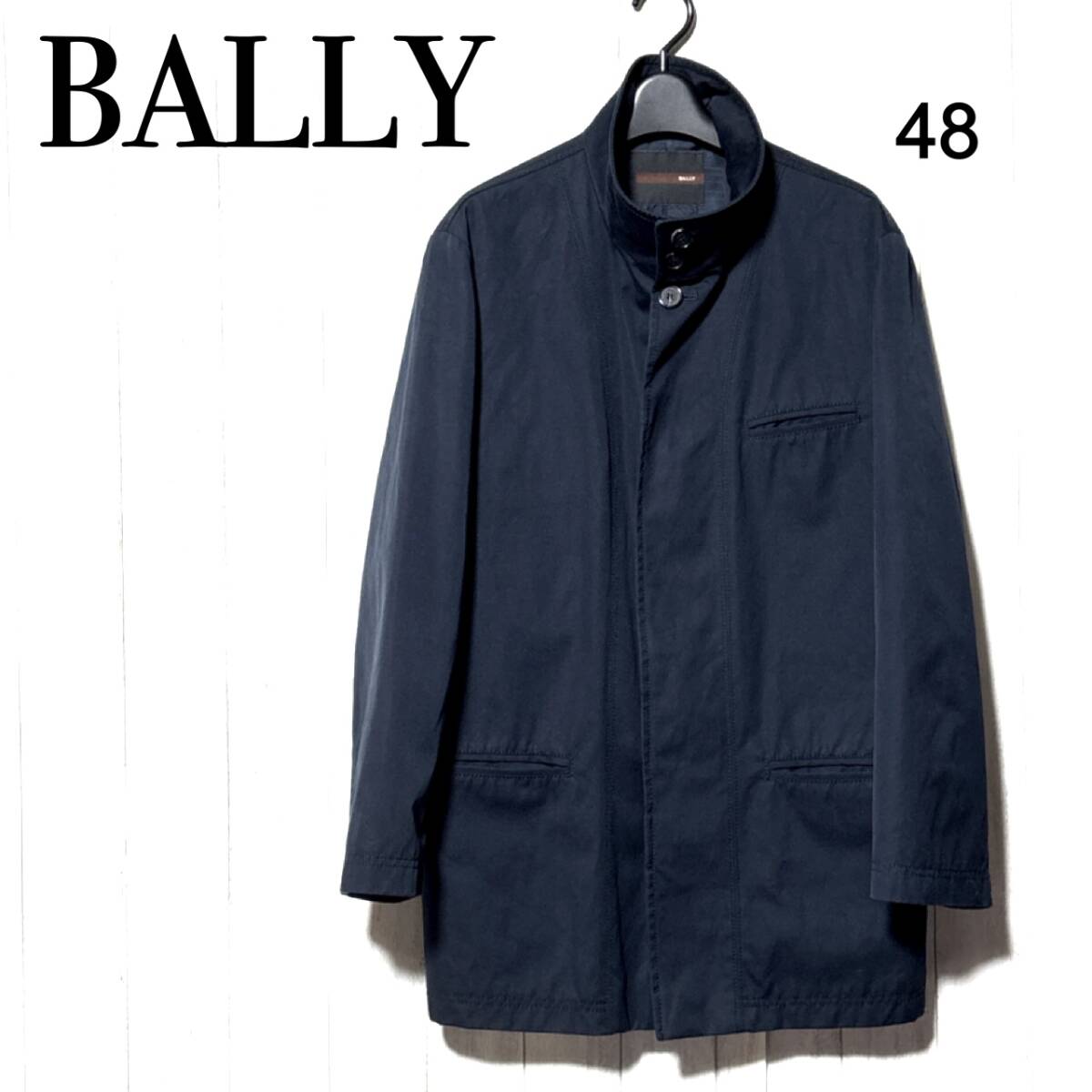 バリー ステンカラーコート 48 BALLY コットン 比翼 イタリア製 紺 ロゴ裏地