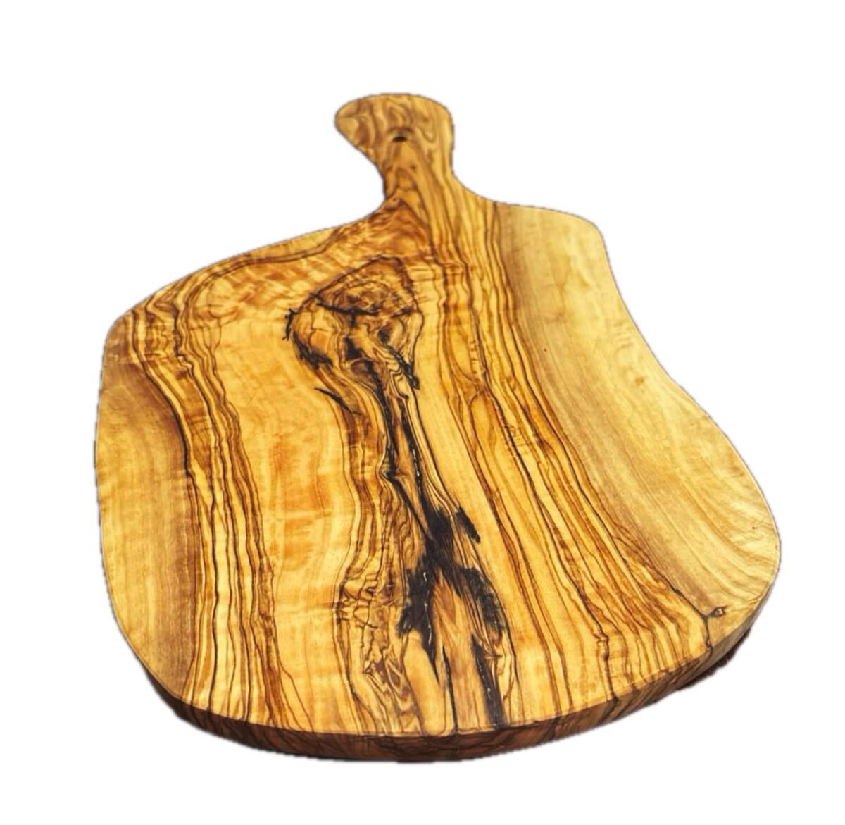 African Square アフリカンスクエア自然なテイストが人気のオリーブの木のキッチン用品。自然木を生かした美しい形で、そのままテーブルにも出せるお洒落なまな板です。食検済みなので食器としてご使用になれます。 手作り品のため、木目、サイズはひとつひとつ微妙に異なりますが、味わいがある食器です。オリーブの木の特長は、硬くて丈夫、木目が美しくキッチンや食器などに使われてきました。こちらの商品は剪定された枝や老木も利用して製作されています。表面にオイルを塗布することで、ヒビ・割れを防ぐことができます。食洗機不可