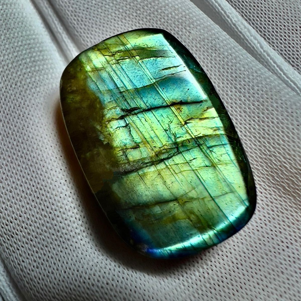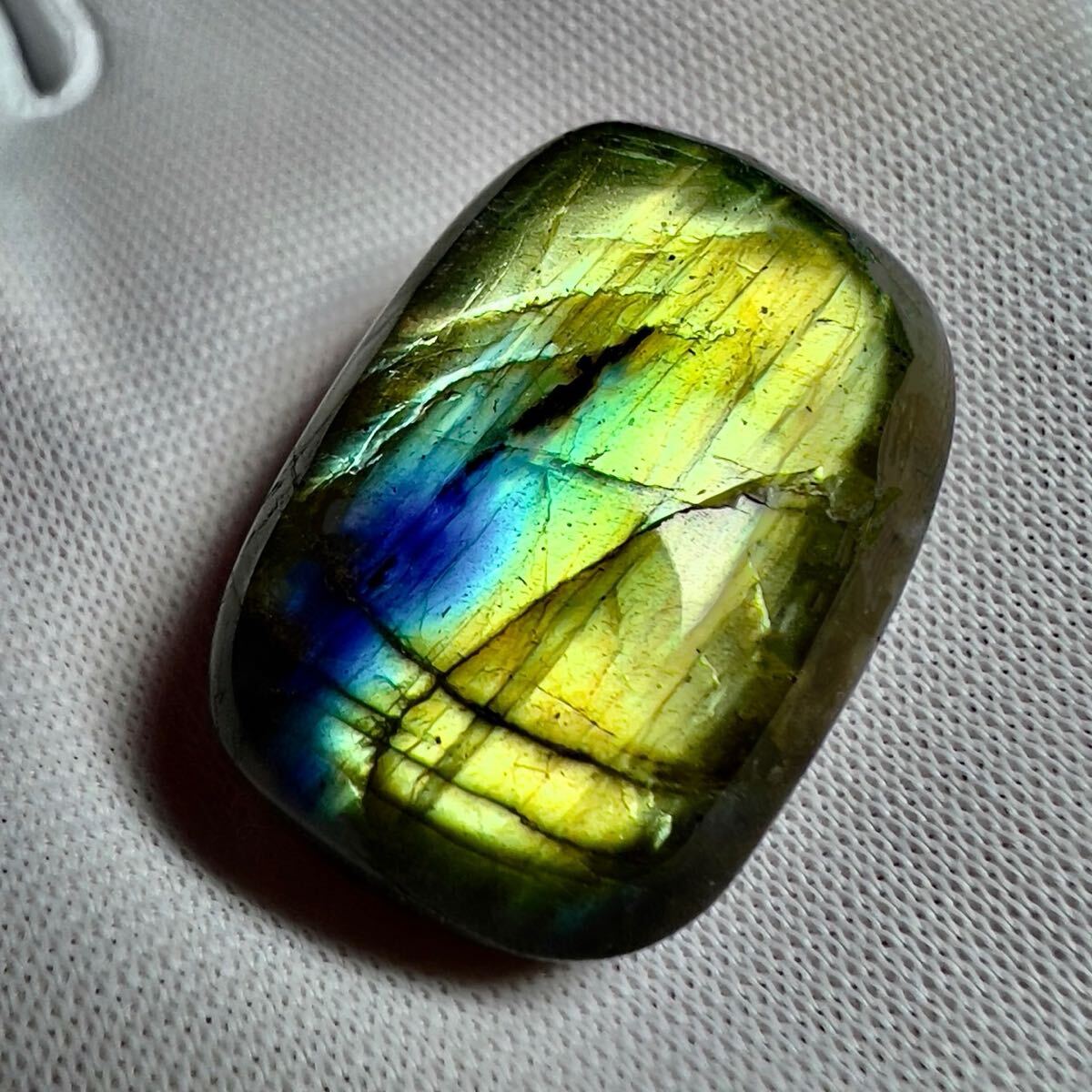 ラブラドライトの最も特徴的なのがラブラドレッセンスと呼ばれる光学効果で、これがいかに美しく見られるのかがこの石では最も大切と言えます。