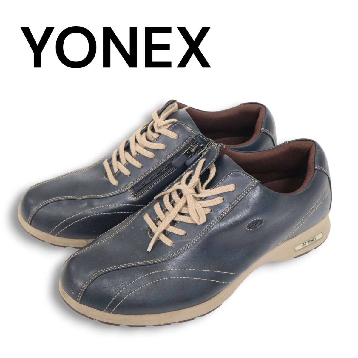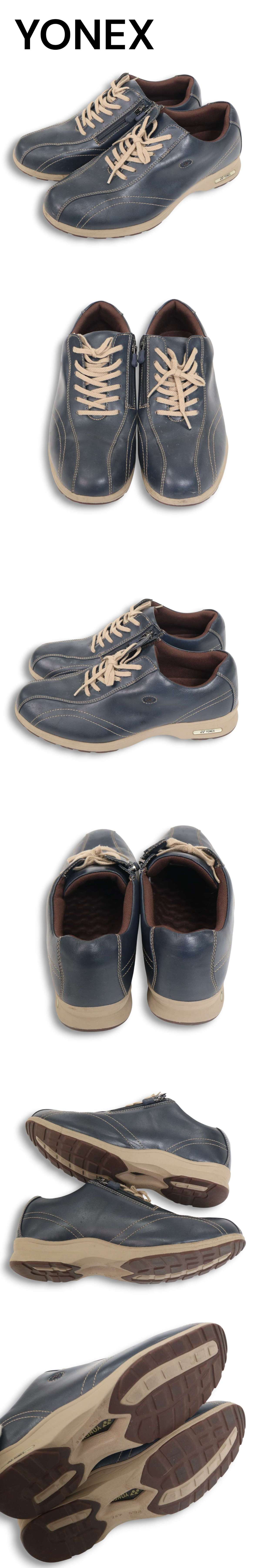 YONEX ヨネックス SHWMC30W★ パワークッション ウォーキング シューズ サイドジップ Sz.26.5 メンズ ネイビー