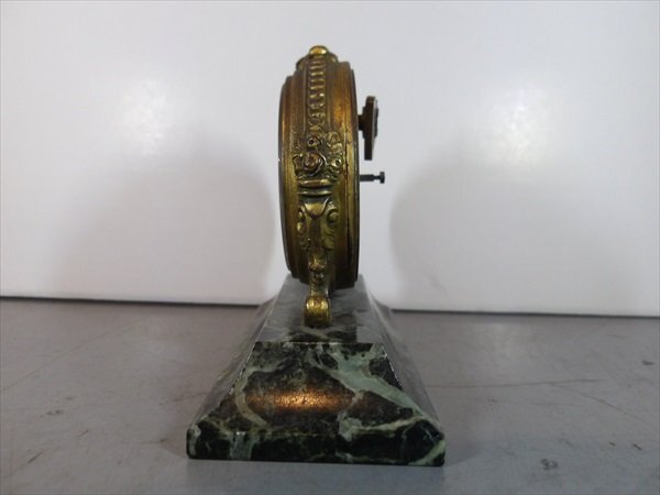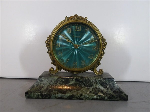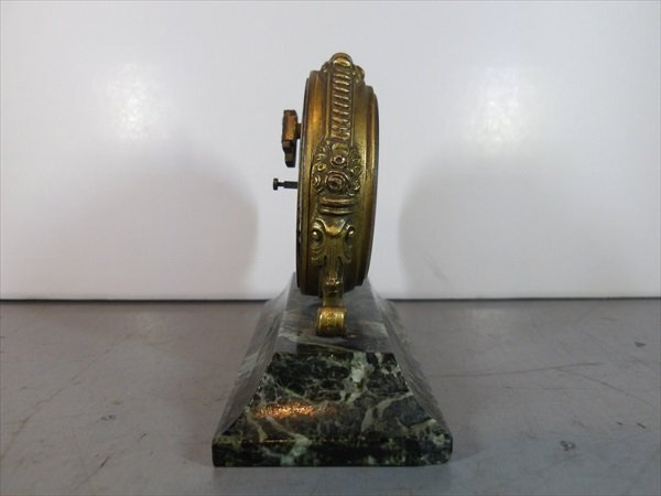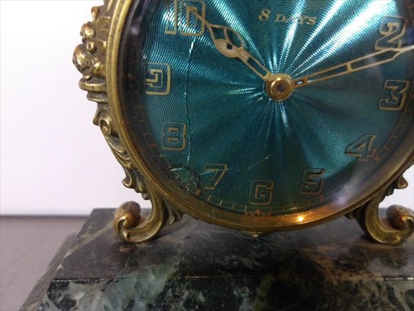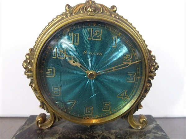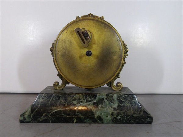 大理石台座の置き時計 青盤面 ゼンマイ式です。