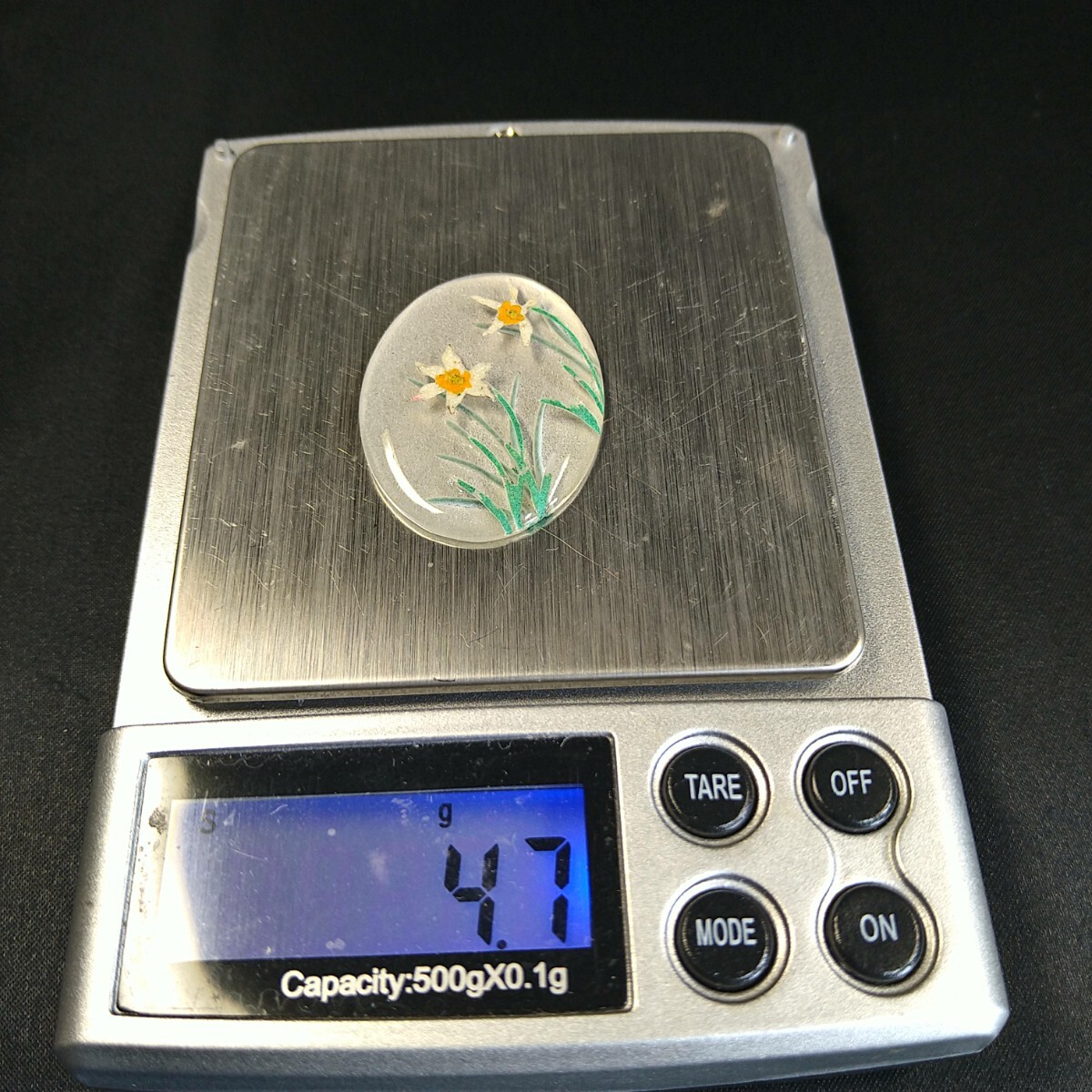 ブラジル産天然白水晶に水仙を