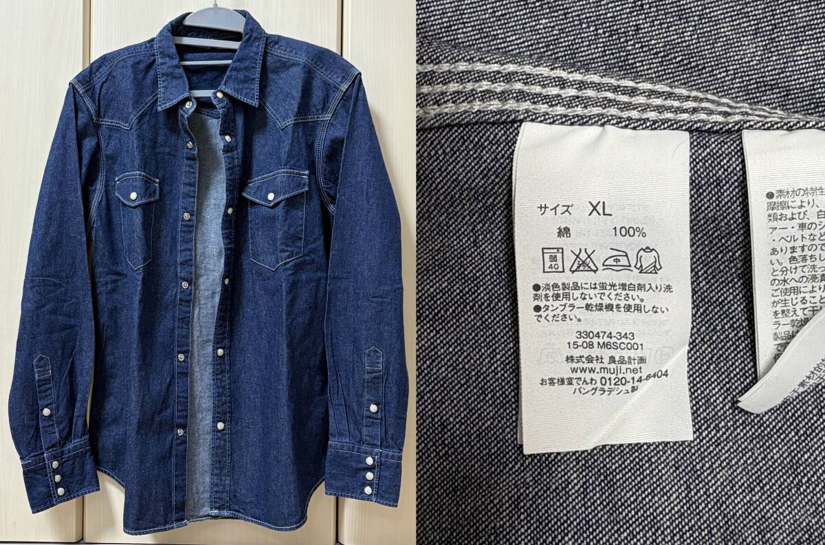 無印良品 メンズ デニム シャツ 長袖 インディゴ XLサイズ 良品計画