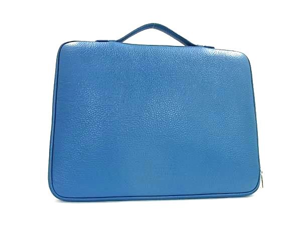 1円 ■美品■ FURLA フルラ レザー ワンハンドル ハンドバッグ ブリーフケース 書類かばん マルチケース ブルー系 BN6122