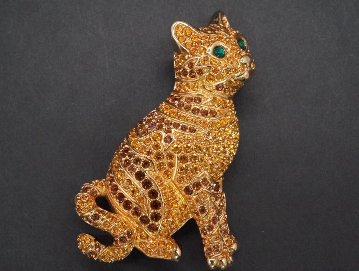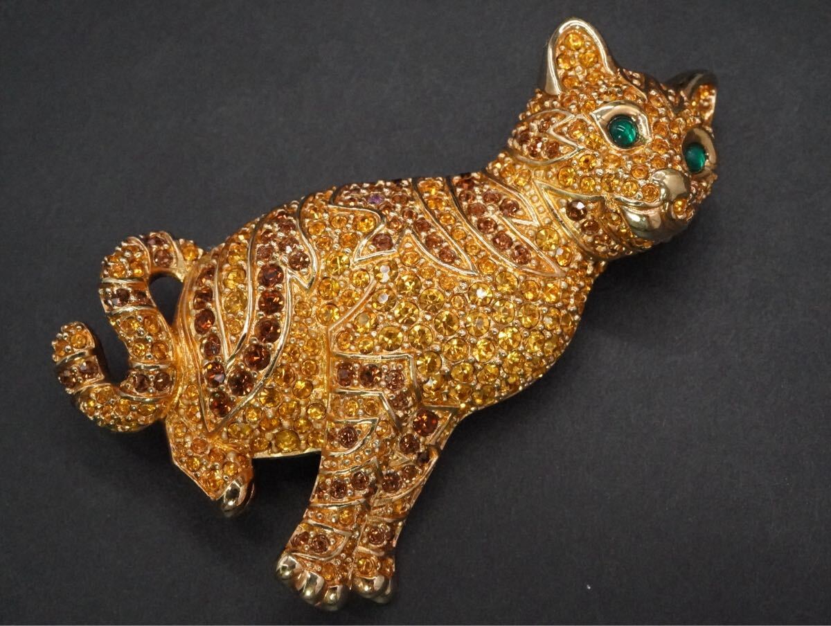 【193】SWAROVSKI スワロフスキー 猫 ブローチ アクセサリー TIA